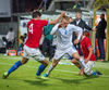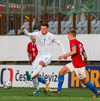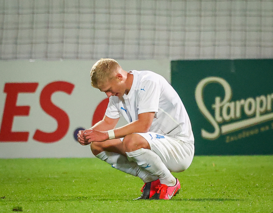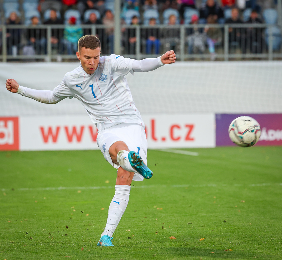 Boltinn dettur á Václav Sejk í teignum og hann skýtur framhjá. Slappt skot hjá honum.