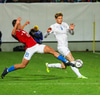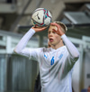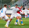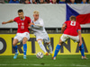 Tékkar setja pressu á Róbert Orra sem var nálægt því að tapa boltanum en reddaði sér.