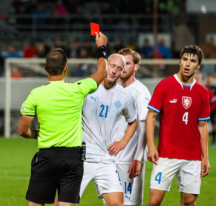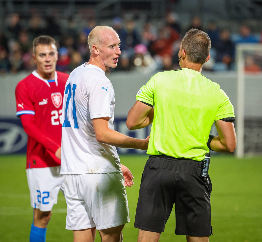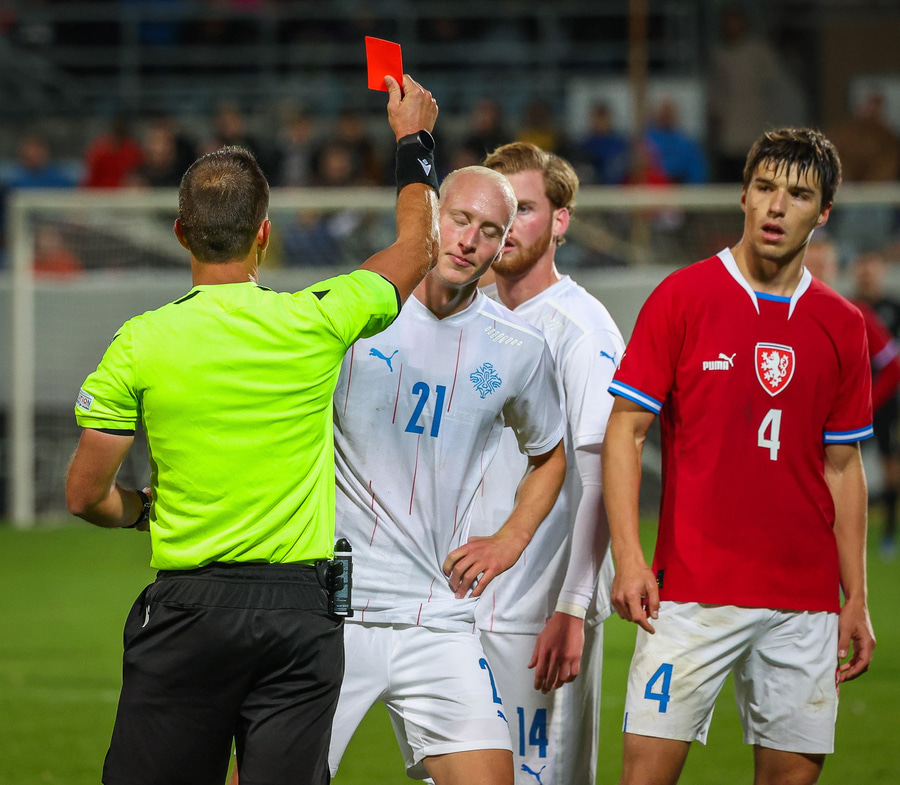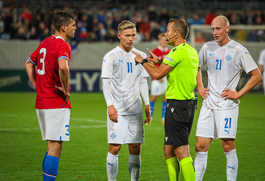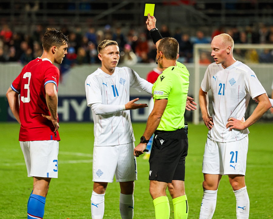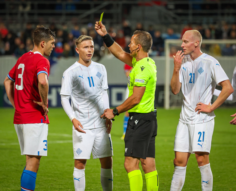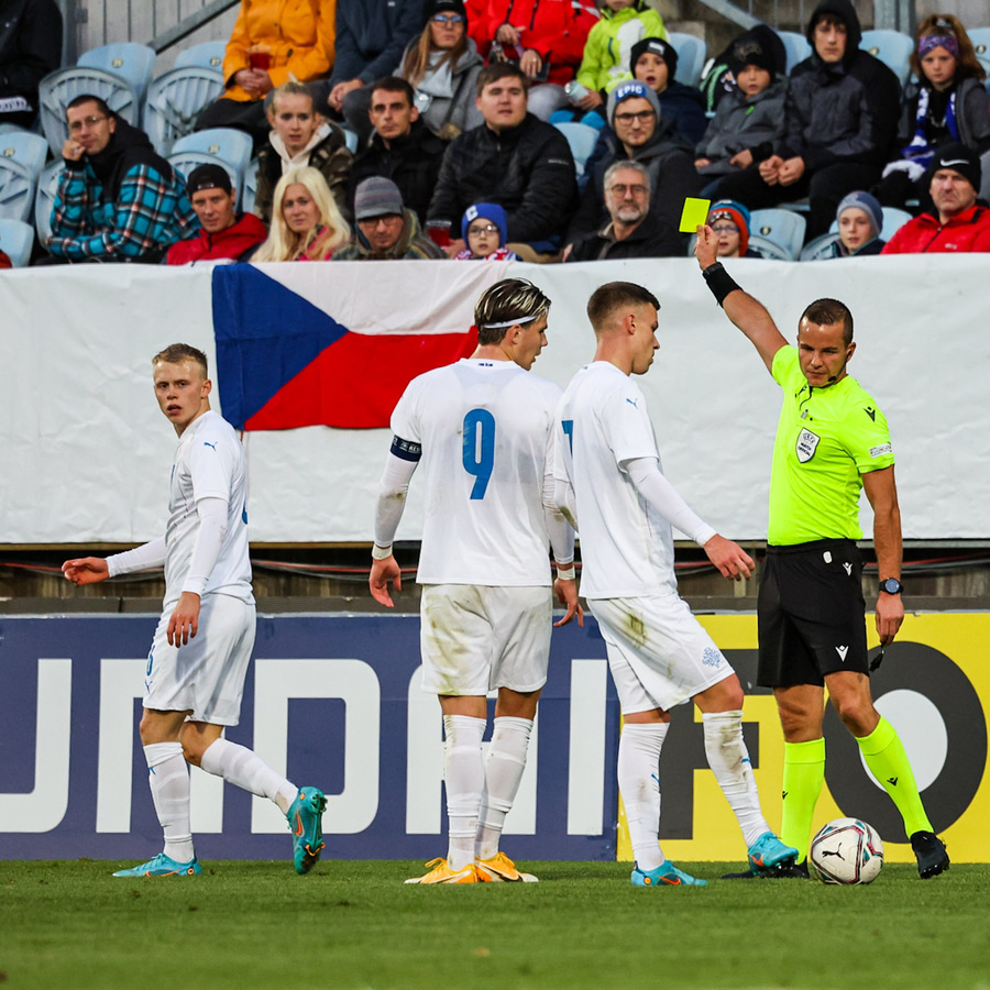 Var að skoða þetta aftur í sjónvarpsupptöku. Tékkar hefðu átt að fá vítaspyrnu. Það er bara svoleiðis. Kristian virkaði líka ansi skömmustulegur strax eftir.