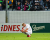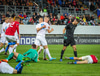NÚNA DAGUR DAN! Hörkuskot fyrir utan teig naumlega framhjá! Þarna munaði litlu! Erum að gera okkur líklegri. Boltastrákurinn fyrir aftan markið hélt að þetta skot myndi enda inni og hélt um höfuðið.