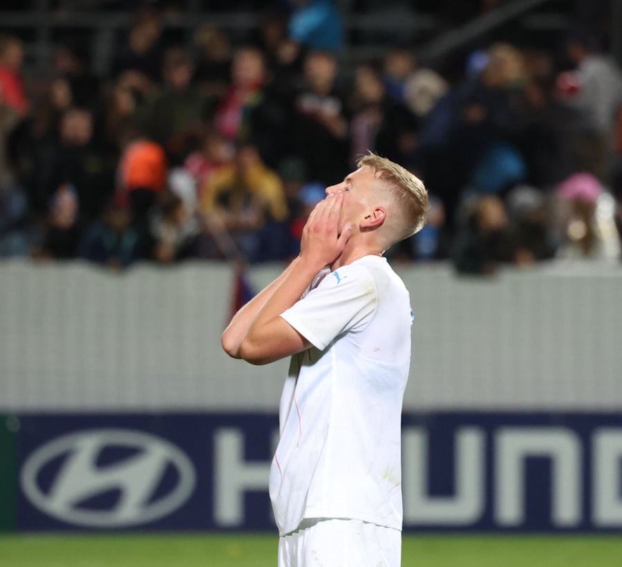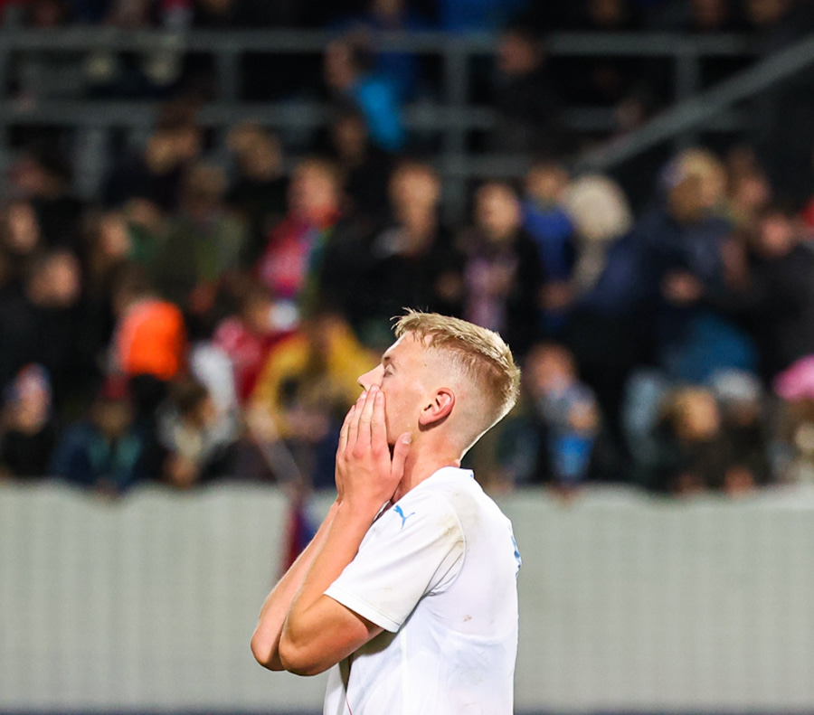Tékkar með hættulegt skot af löngu færi sem Hákon nær að verja. Í kjölfarið vinna heimamenn hornspyrnu. Þá lifnar yfir stuðningsmönnum í stúkunni.