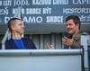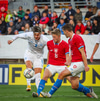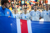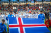 "Áfram Ísland" heyrist. Það eru nokkrir Íslendingar í stúkunni sem láta í sér heyra.