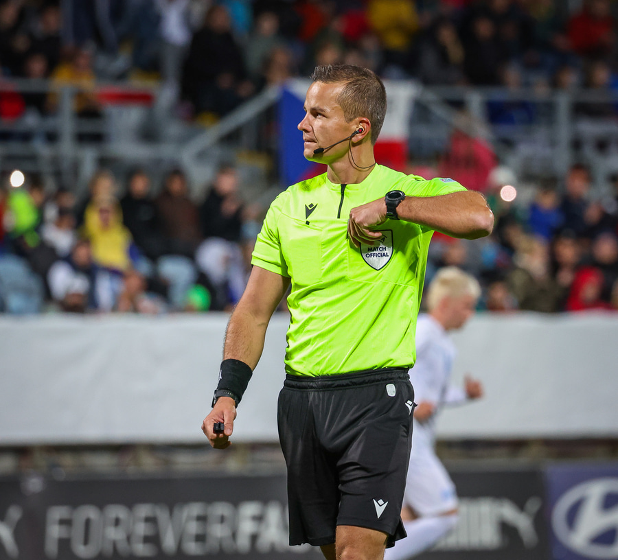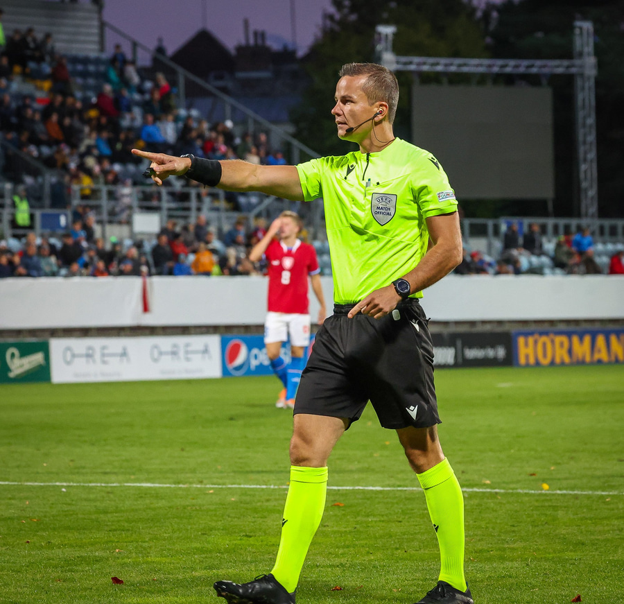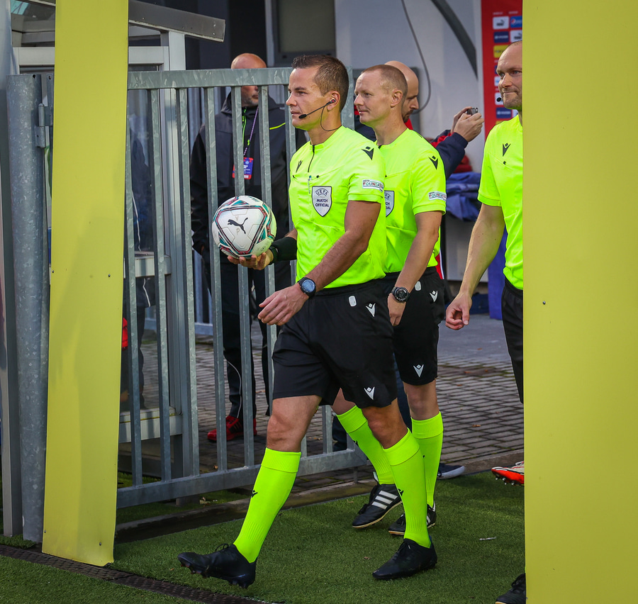 Dómari leiksins er 34 ára Dani sem dæmir í dönsku úrvalsdeildinni. Hann hefur dæmt í hinum ýmsu keppnum á vegum UEFA, þar á meðal í Þjóðadeildinni og forkeppni Meistaradeildarinnar. Allt dómarateymið kemur frá Danmörku.