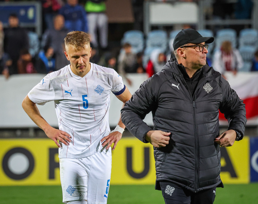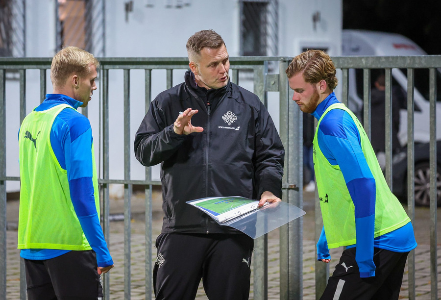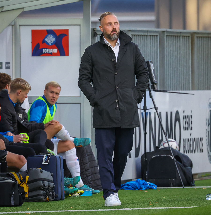 "Nei, við erum bara með mjög gott lið og lítum á það jákvæðum augum hvað íslenskur fótbolti er að gera flotta hluti. Við erum með mjög gott U21 landslið sem er komið 90 mínútum frá EM og svo erum við með leikmenn líka sem eru að spila hlutverk með A-landsliðinu. Það er það jákvæðasta í þessu."