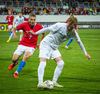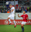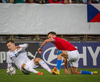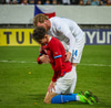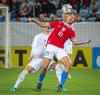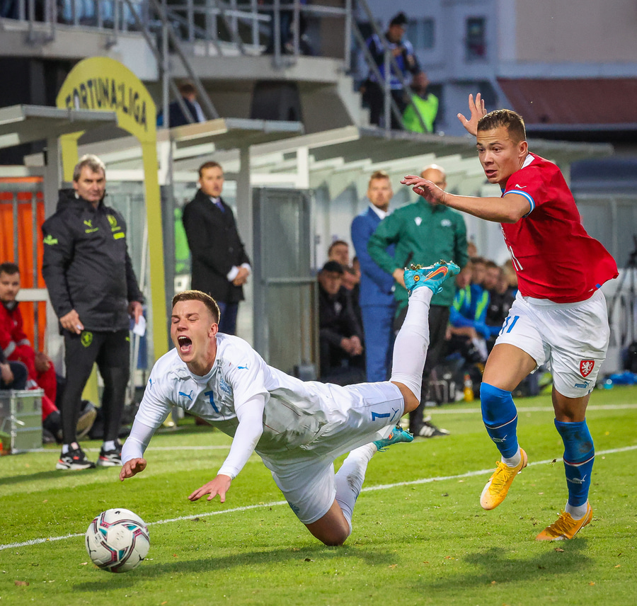 Tékkar vilja víti! David Jurásek fer niður eftir viðskipti við Kristian. Viðurkenni að það var sterk lykt af þessu!