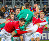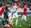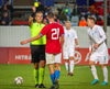 Matej Kovár handsamar boltann og það sýður allt upp úr. Valgeir hrinti leikmanni Tékka sem hafði urðað eitthvað yfir hann.