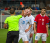Brotið á Valgeiri. Of seinn í þetta og fær réttilega rautt.