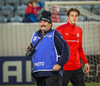 Okkar lið er að taka hinn hefðbundna göngutúr um völlinn áður en menn fara inn í klefa og gera sig klára yfir upphitun.