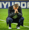 Það styttist í að byrjunarliðin verði opinberuð, nokkrar mínútur í það. Þrettán gráður og skýjað hérna, létt rigning áðan. Svona rétt til að bleyta völlinn fyrir baráttuna. Hér er leikið á náttúrulegu grasi en fyrri leikurinn var spilaður á gervigrasi.