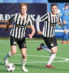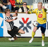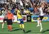 Bryan og Hallgrímur með áhugaverða útfærslu á aukaspyrnu. Bryan fór tvisvar yfir boltann, Hallgrímur einun sinni áður en aukaspyrnan var tekin. Fyrirgjöfin ekki góð og KRingar skalla frá.