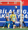 Bryan Van Den Bogaert með frábæra stungusendingu ætlaða Ásgeiri en hann nær ekki að taka á móti boltanum sem rúllar að lokum í fangið á Beiti.