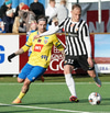 Hallgrímur Mar missir boltann á vondum stað. Kennie Chopart kemst í fína stöðu rétt fyrir utan vítateiginn og á skot sem Jajalo ver vel.