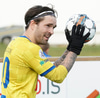 Ægir Jarl gerir vel að koma sér í skotfæri en þarf að teygja sig í boltann og skotið því laust og Jajalo ekki í vandræðumþ