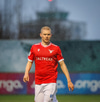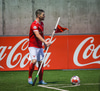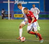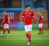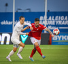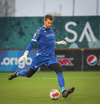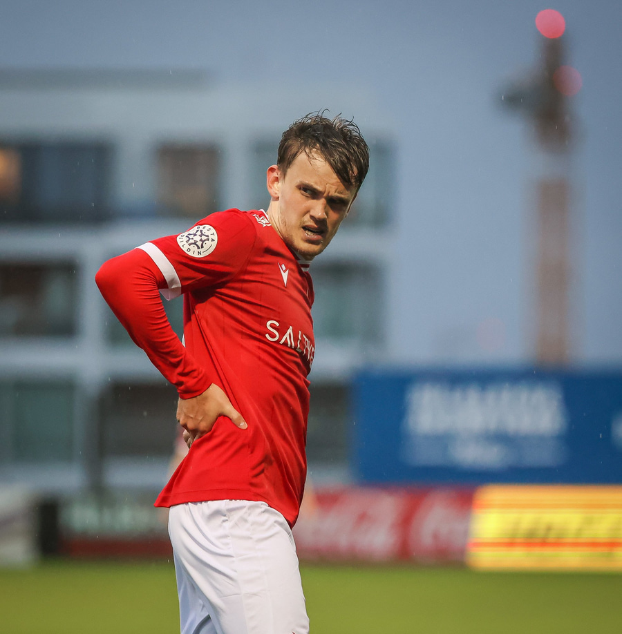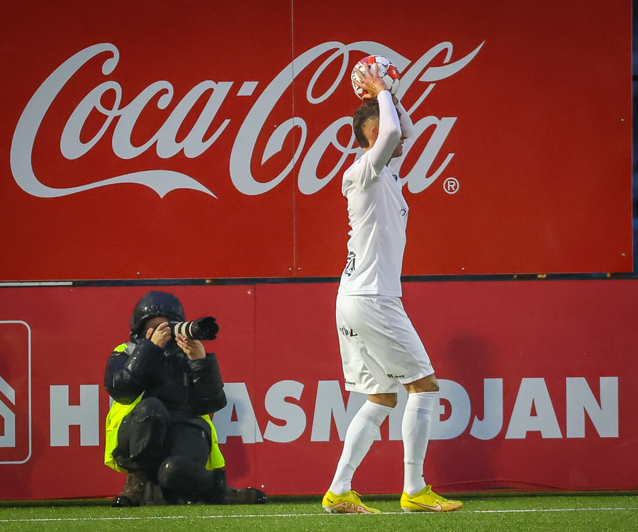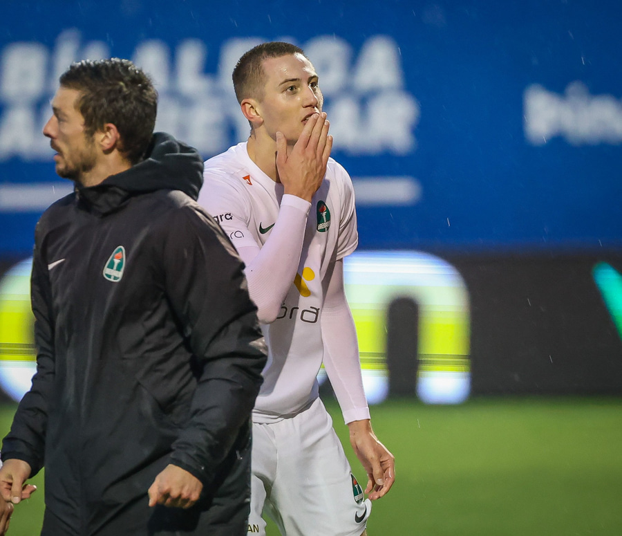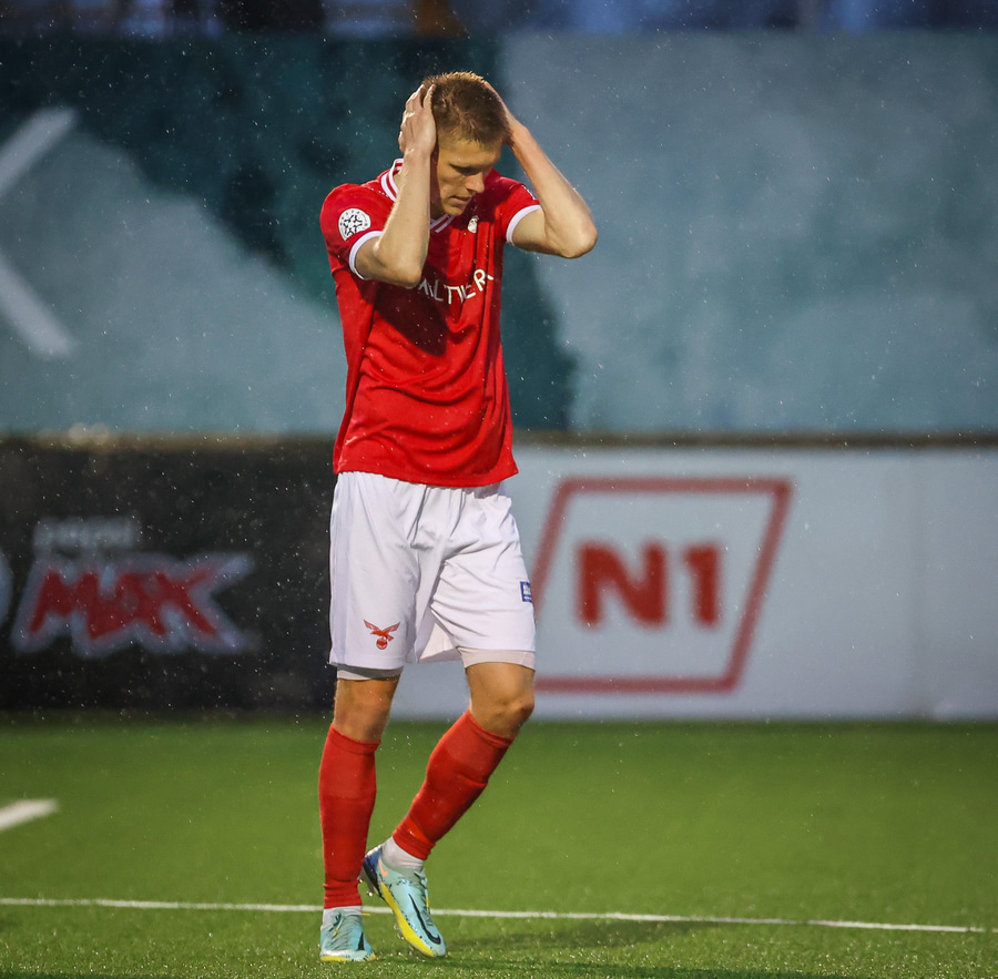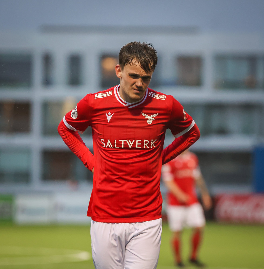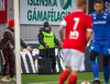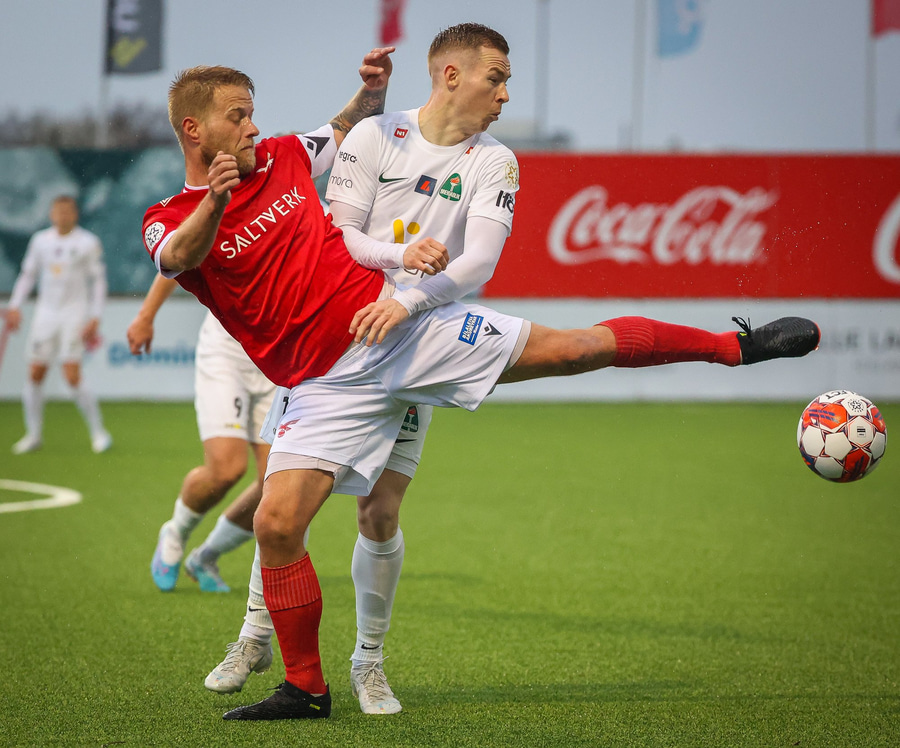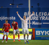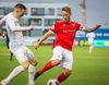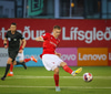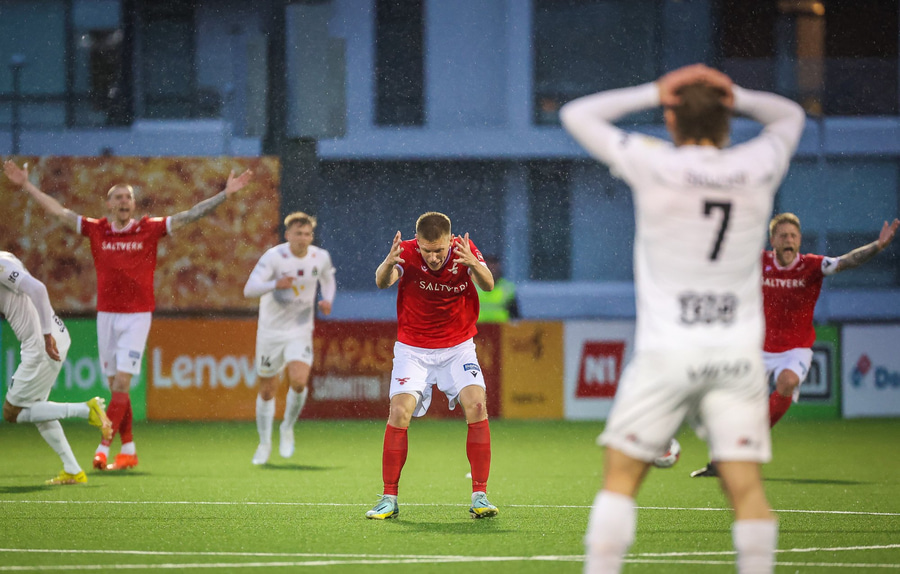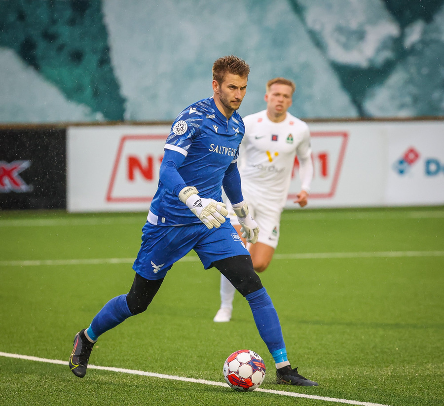 Blikar að komast í ágætis stöðu en Patrik Johannesen skóflar boltanum yfir markið.