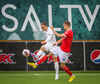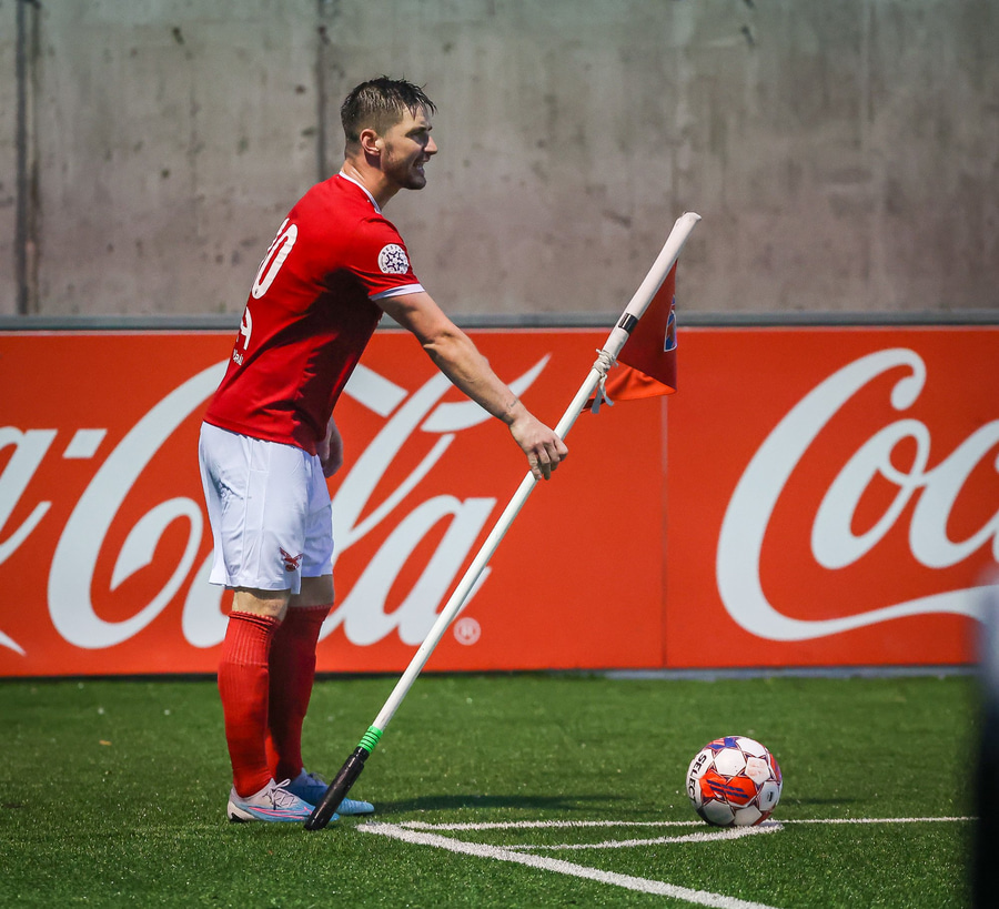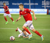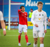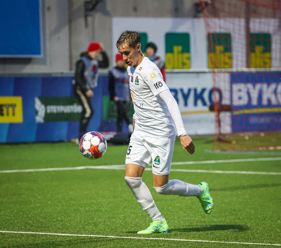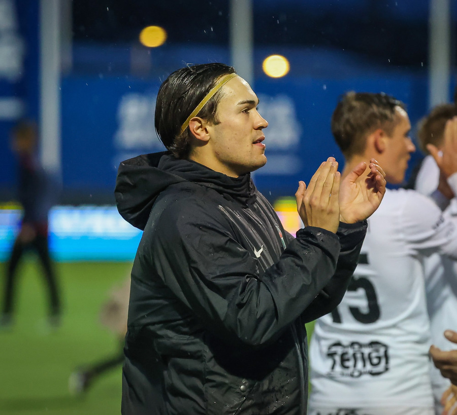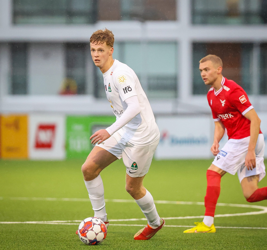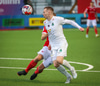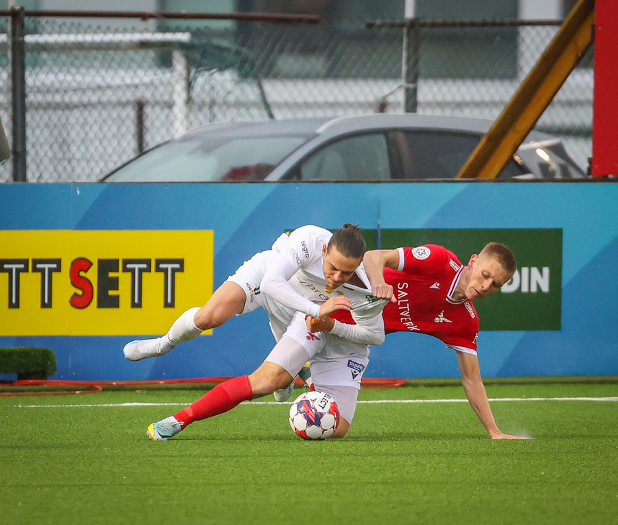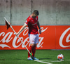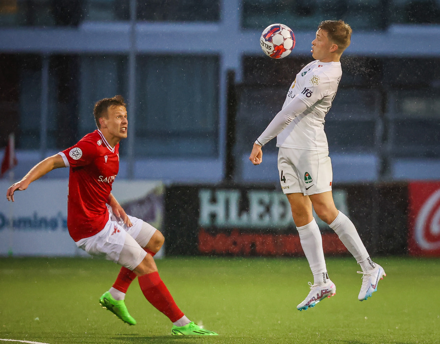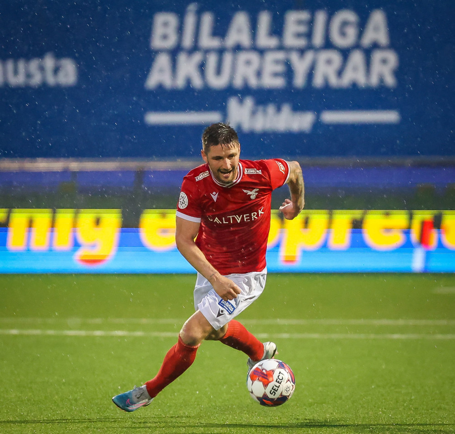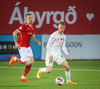 Ágúst Eðvald með frábæran sprett og leggur hann á Viktor Karl sem reynir að koma honum fyrir sig en Frederik nær að stökkva á boltann.