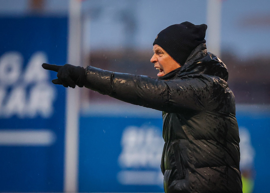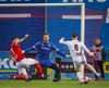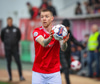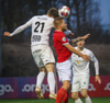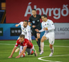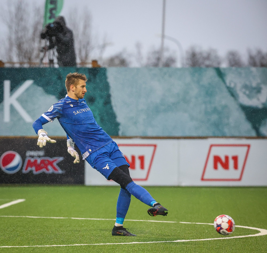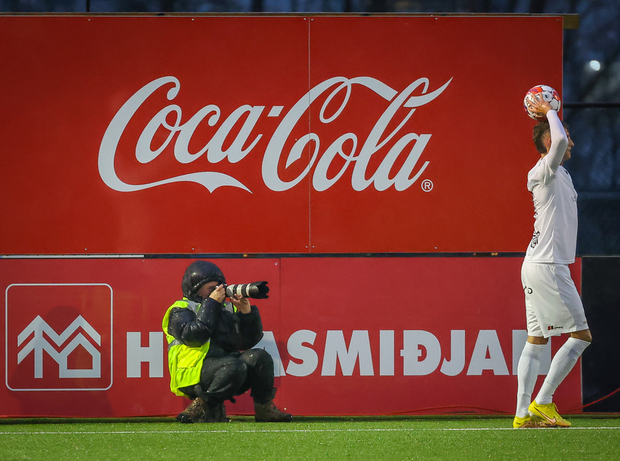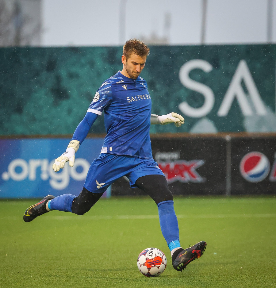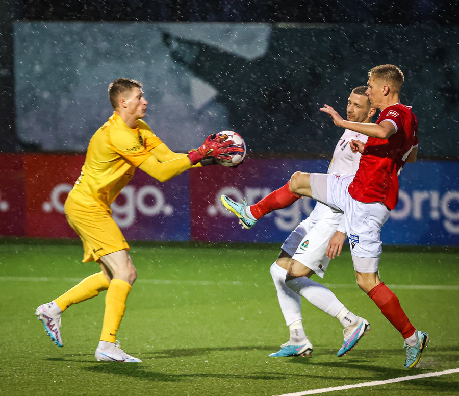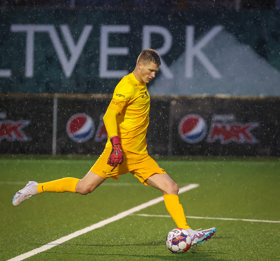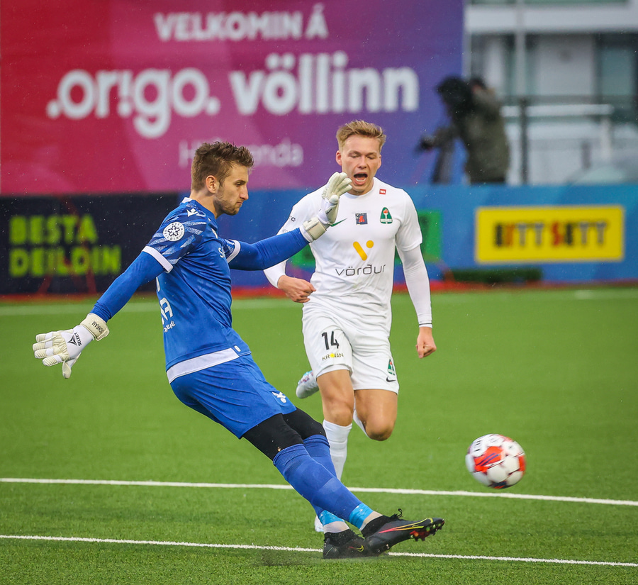 Jason Daði með tilraun sem Frederik á í smá vandræðum með en heldur þó boltanum.