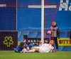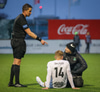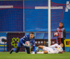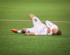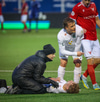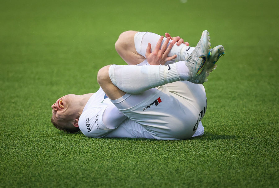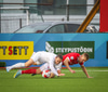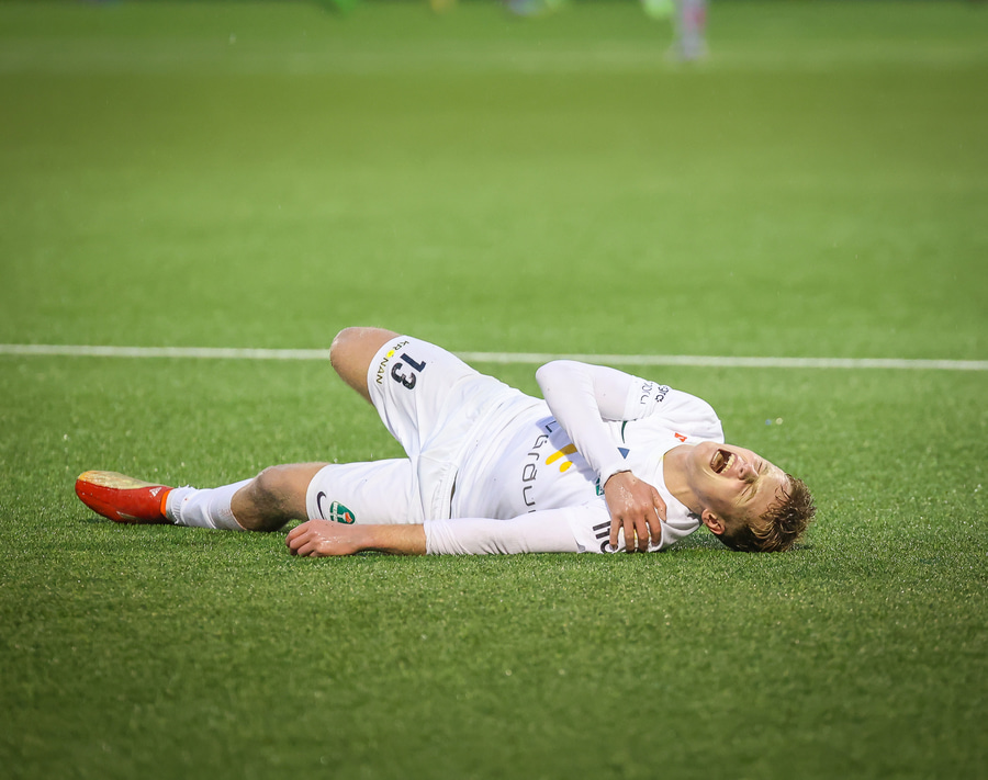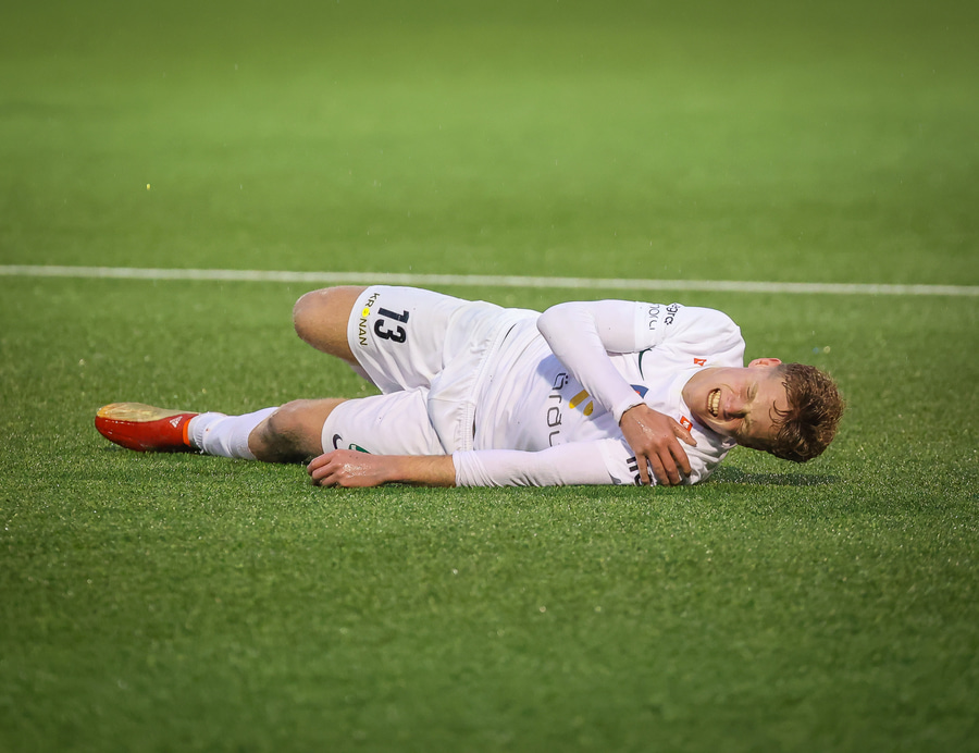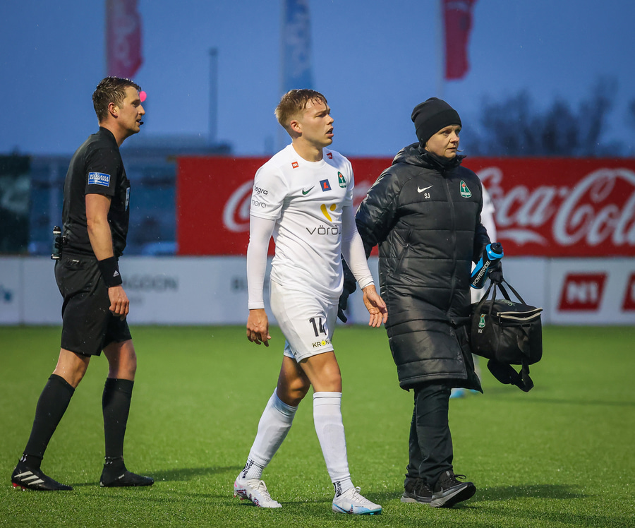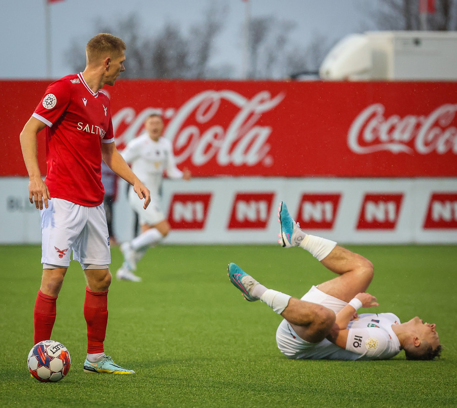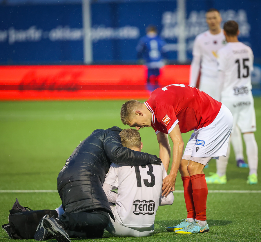 Leikurinn er stopp en Anton Logi virðist sárþjáður á vellinum eftir samstuð. Féll á öxlina sem hefur ekki verið gott.