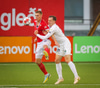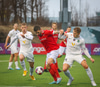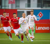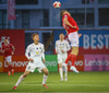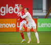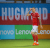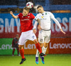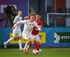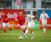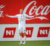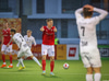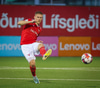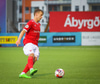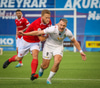 Valsmenn eru í sínum hefðbundna rauða búning á meðan Breiðablik spila í hvíta varabúningnum sínum.