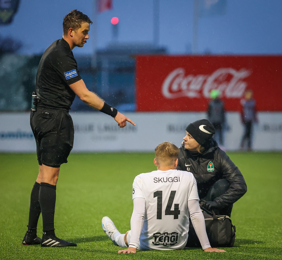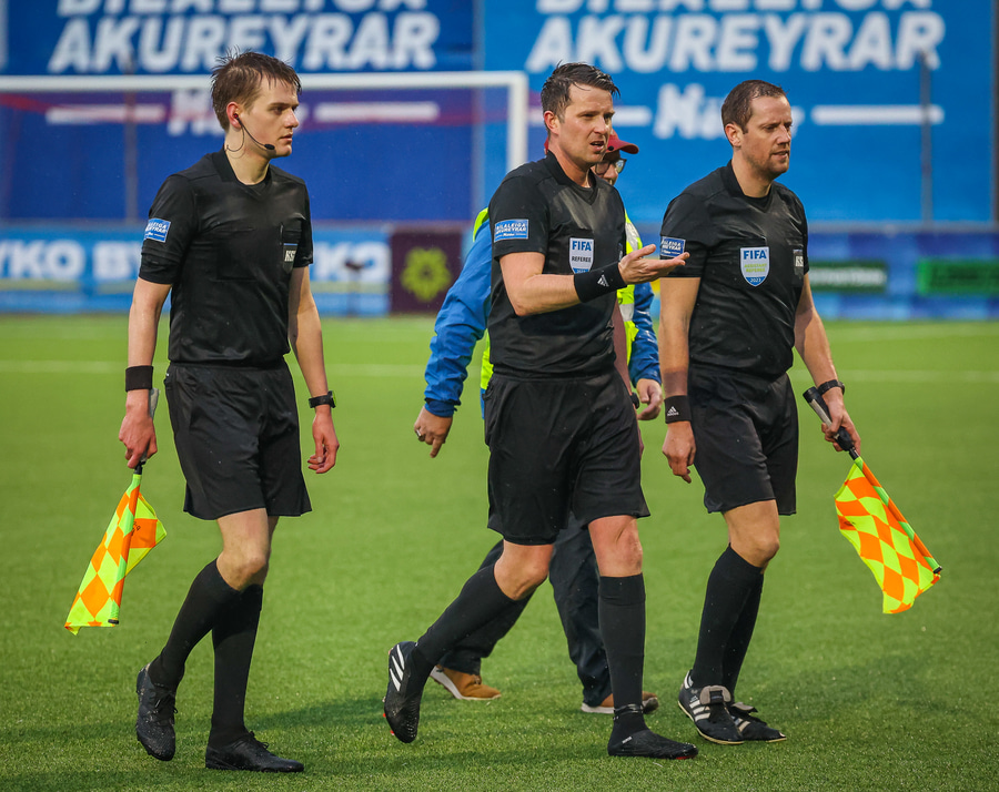 Vilhjálmur Alvar Þórarinsson fær það verðuga verkefni að munda flautuna hér í kvöld en honum til aðstoðar verða þeir Gylfi Már Sigurðsson og Guðmundur Ingi Bjarnason.
