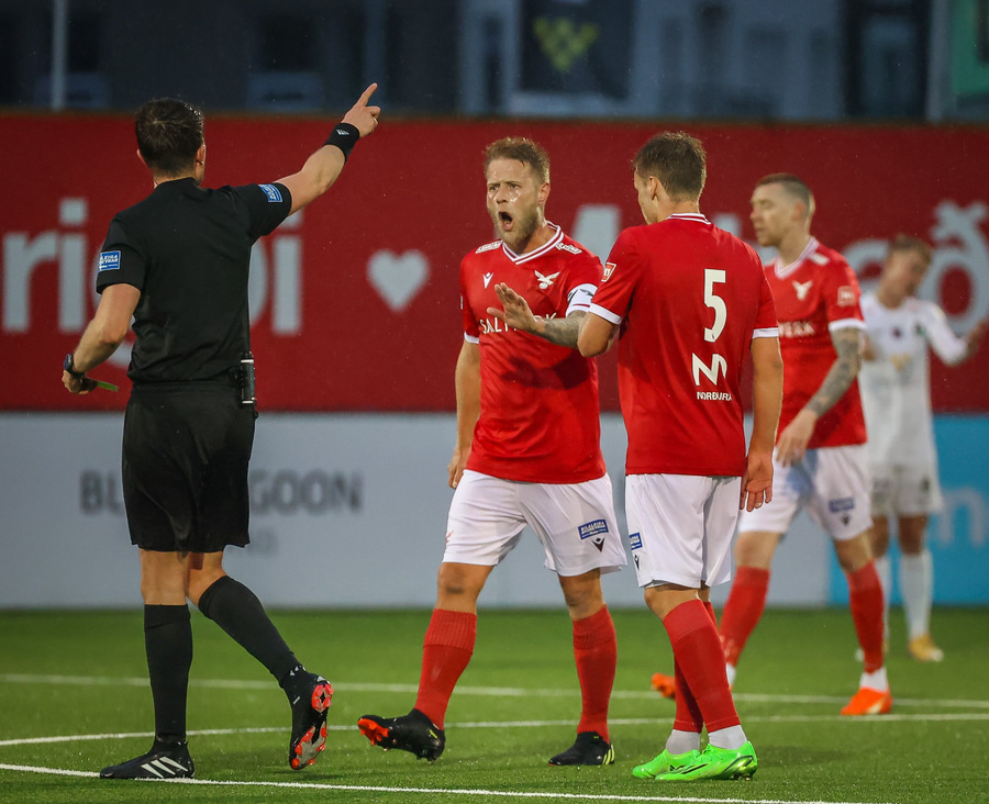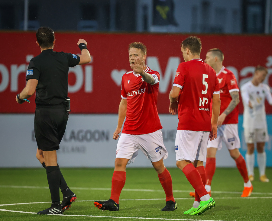 Klaufagangur í öftustu línu Blika en sleppa með það. Tryggvi Hrafn við það að sleppa í gegn en flaggið á loft.