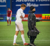 Valsmenn að komast í frábæra stöðu en missa boltann of langt frá sér og Anton Ari nær að komast út á móti og loka.