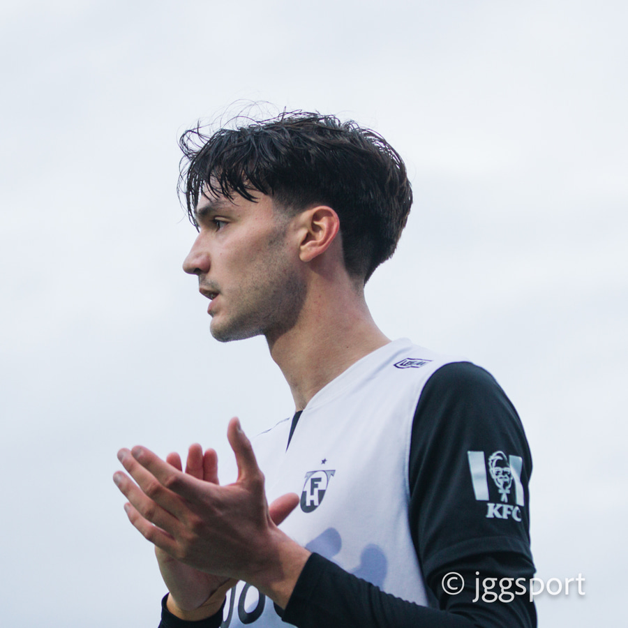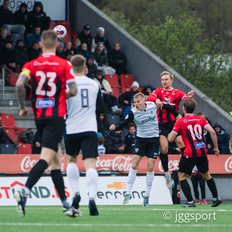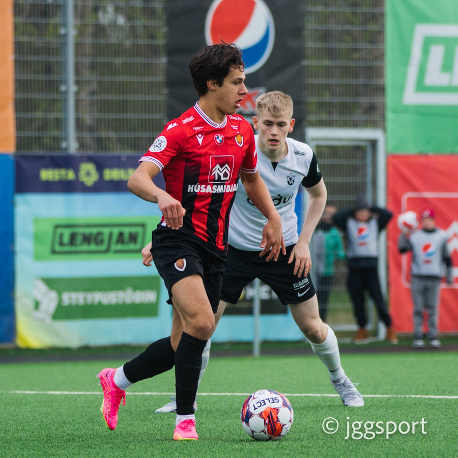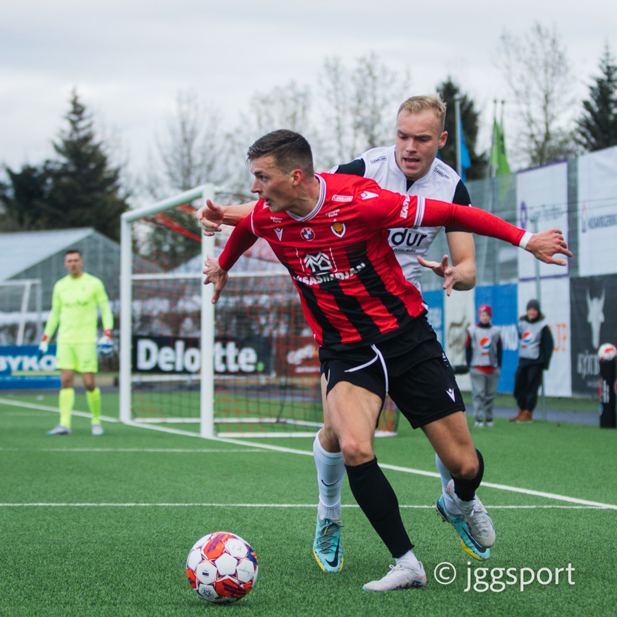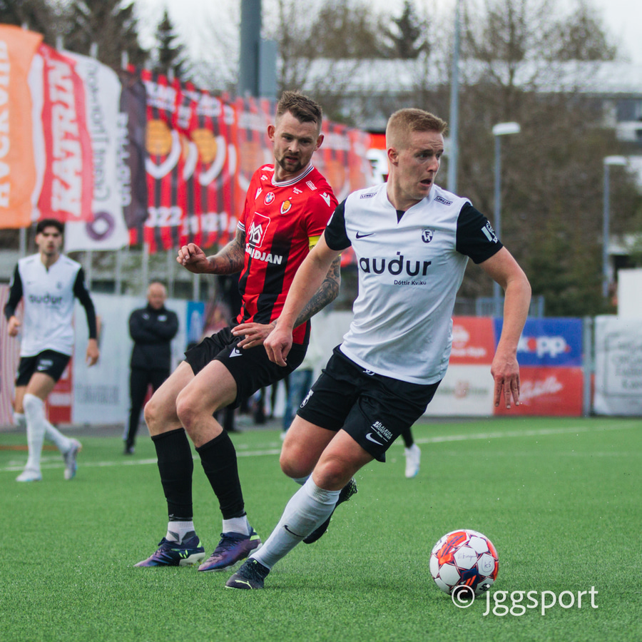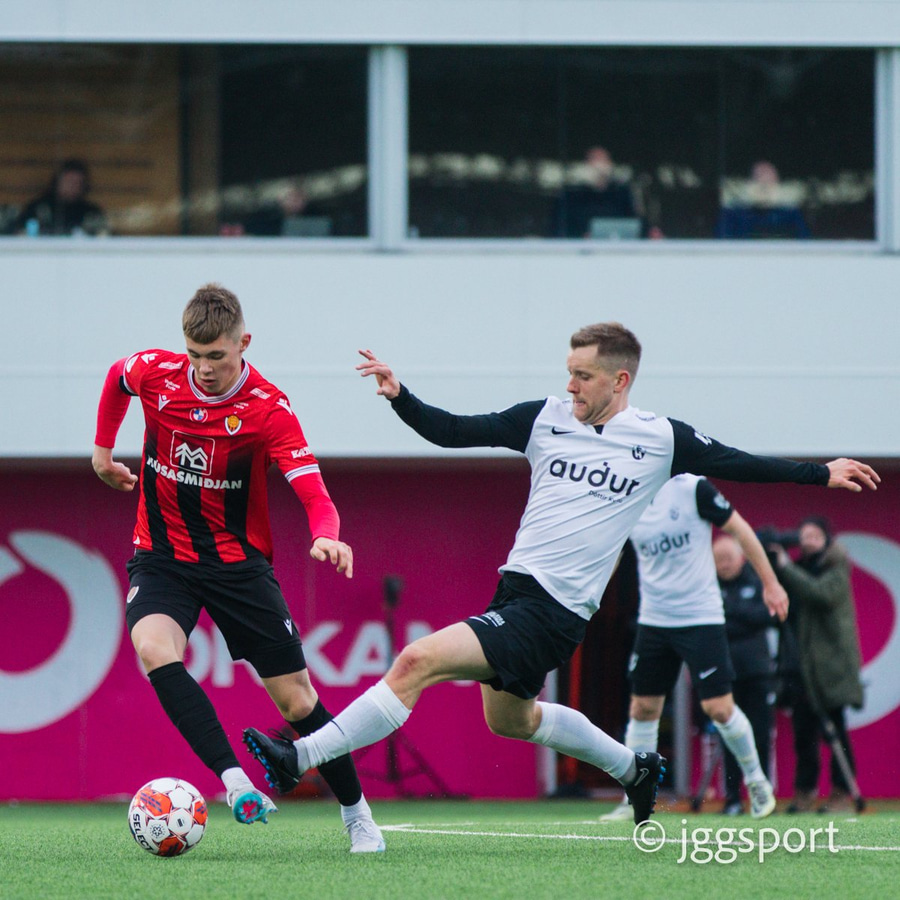 Gunnar Vatnhamar með myndarlegan sprett upp miðjan völlinn en Dani Hattaka bjargar á ögurstundu.