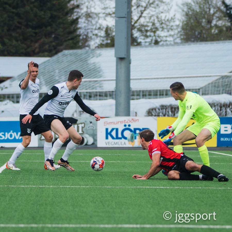 Ástbjörn með frábæran bolta fyrir sem er frábær. Oliver fær hann í sig og þetta er bara nálægt því að skora sjálfsmark en er heppinn að þetta endi í fanginu á Ingvari.