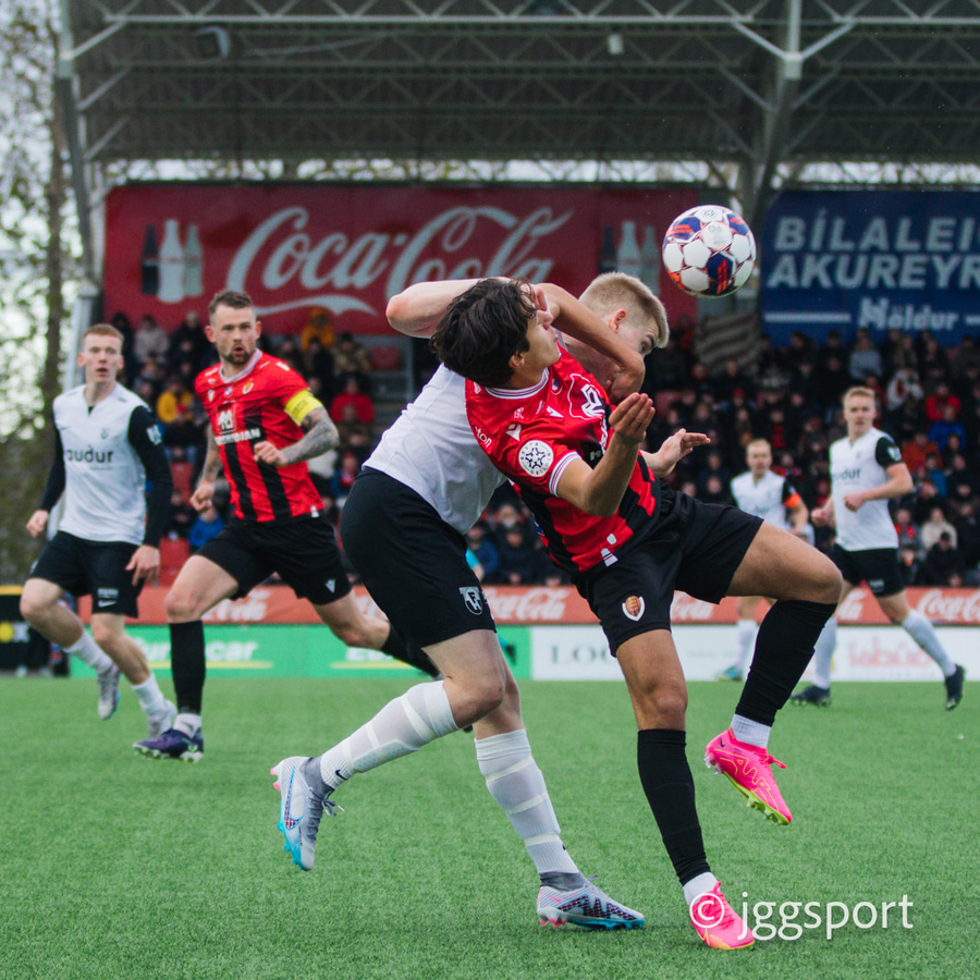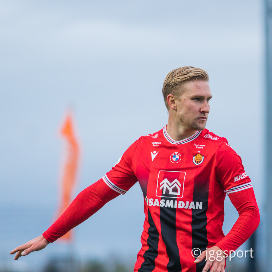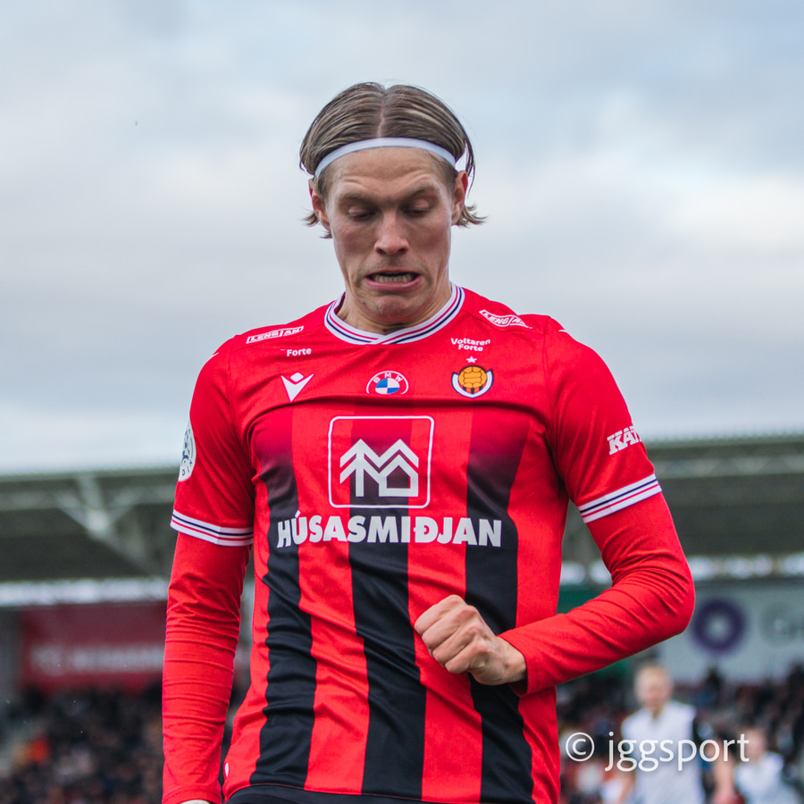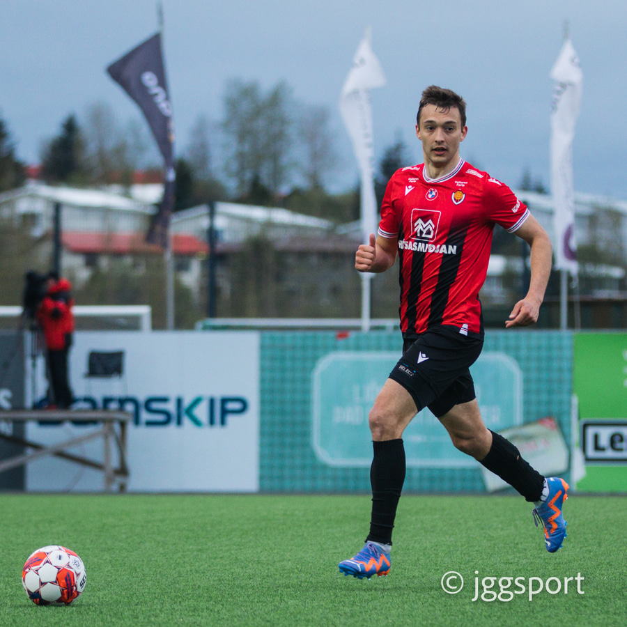 Nikolaj sendir boltann út á kantinn á Birni Snæ sem lætur bara vaða. Skotið fast en er beint á Sindra og þarna verður hann einfaldlega að gera mun betur.