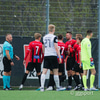 Finnur Orri sem var á gulu spjaldi fær hér beint rautt spjald fyrir groddaralega tæklingu á Gísla Gottskálk.
