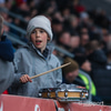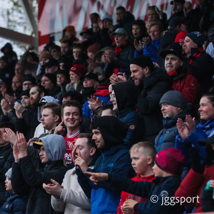 Þétt setið í stúkunni í dag og bæði lið með glommu af stuðningsmönnum í stúkunni.