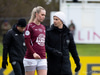 María Dögg tosar Guðrúnu Þóru niður og fær gult spjald.