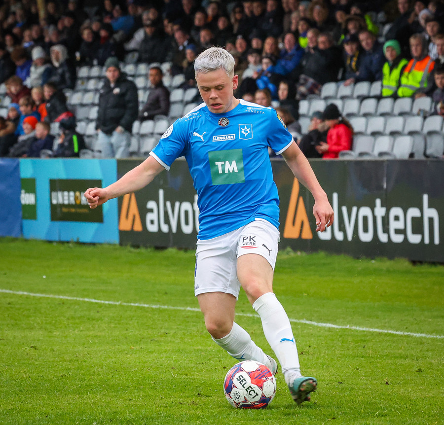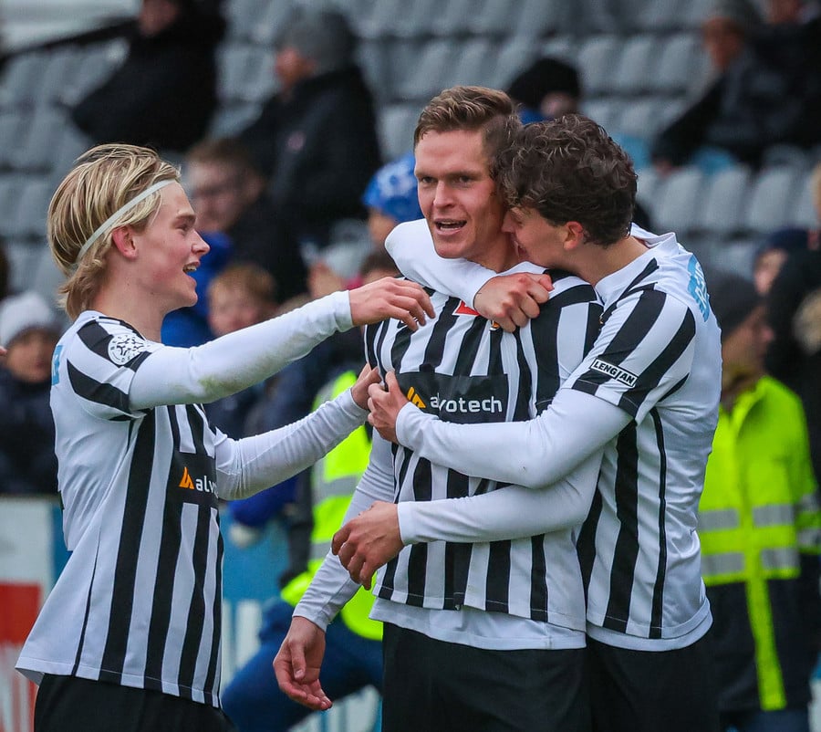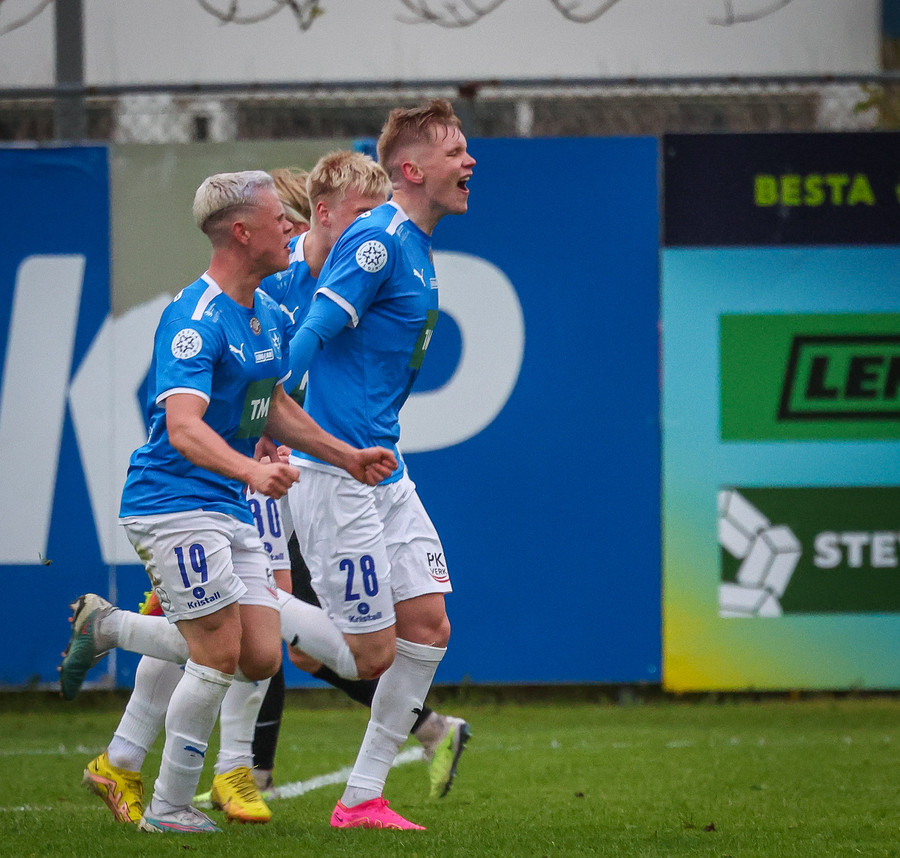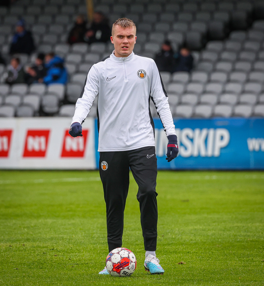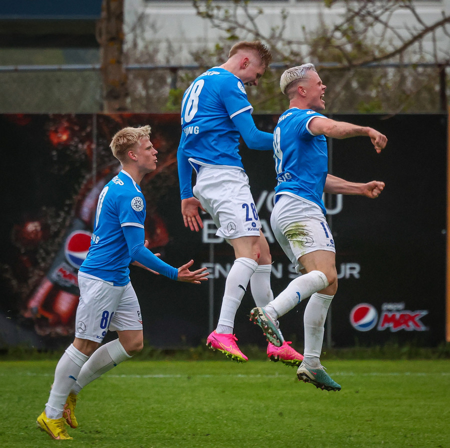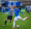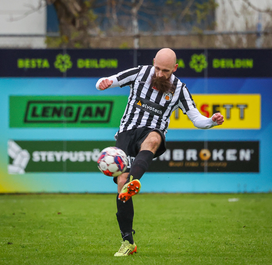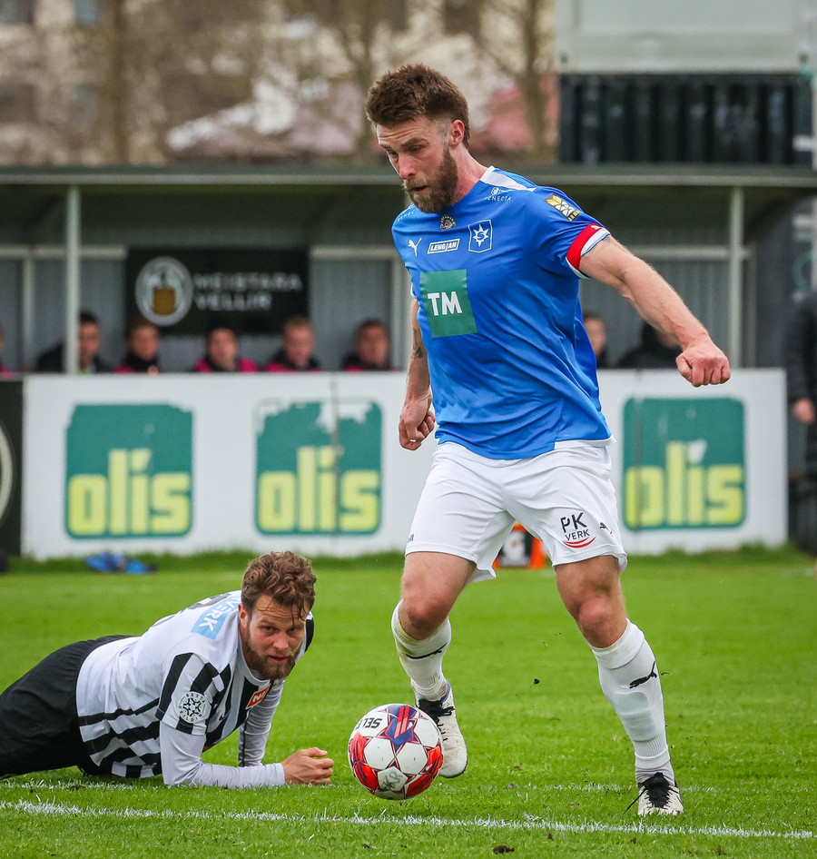 Fær boltann frá Benoný, fer framhjá Björn Berg og lætur vaða utarlega úr teignum. Skotið með vinstri fæti í fjærhornið.
