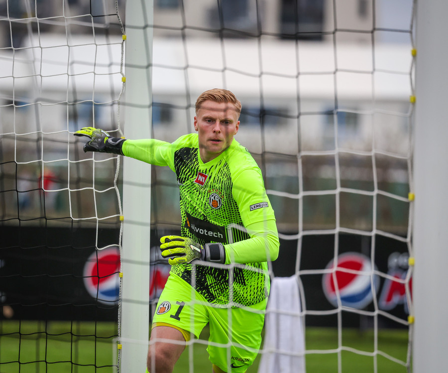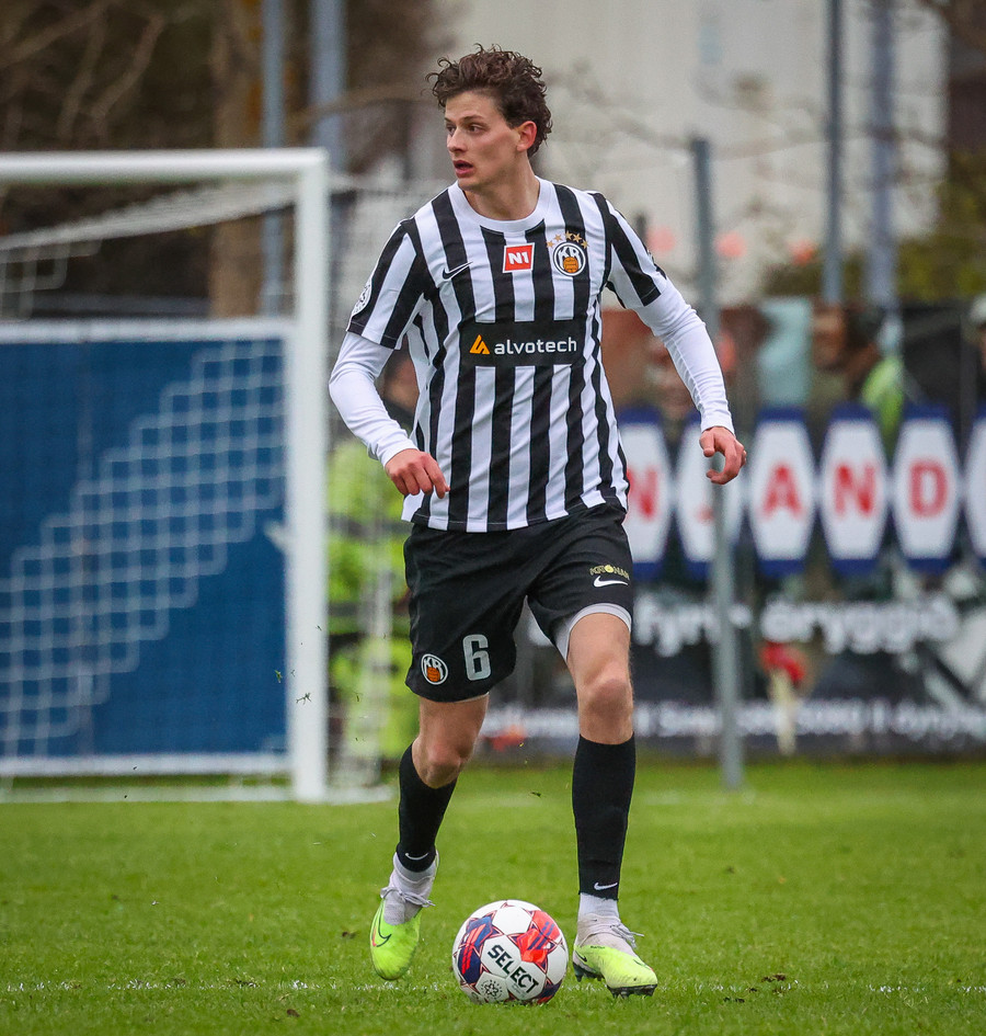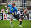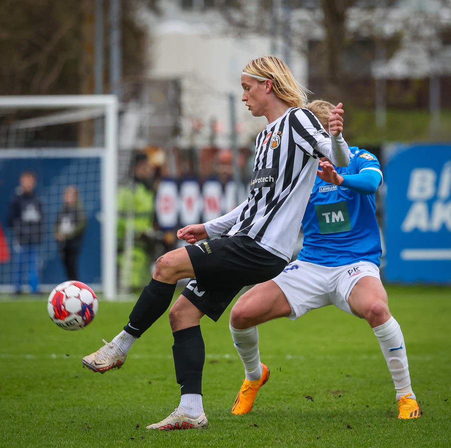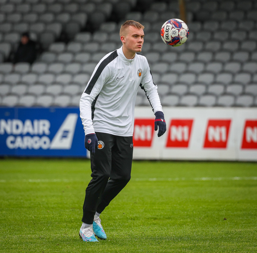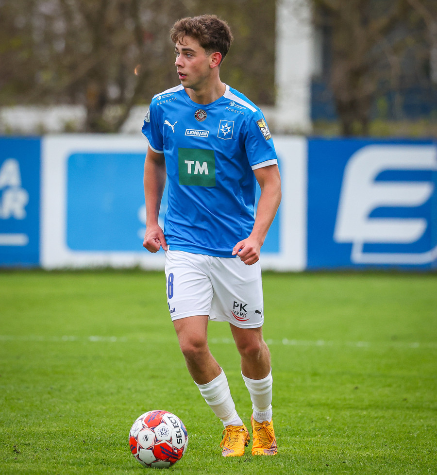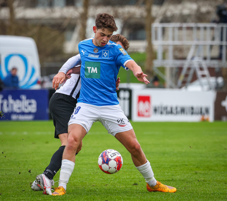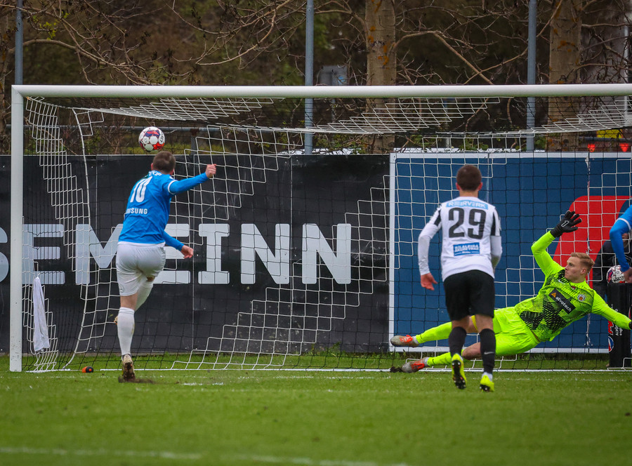 Fær boltann frá Benoný, fer framhjá Björn Berg og lætur vaða utarlega úr teignum. Skotið með vinstri fæti í fjærhornið.