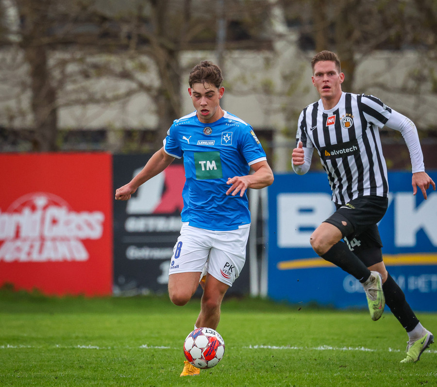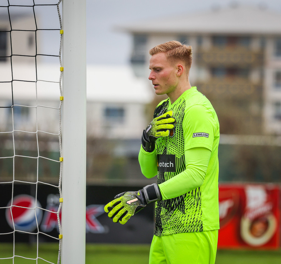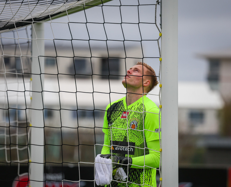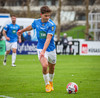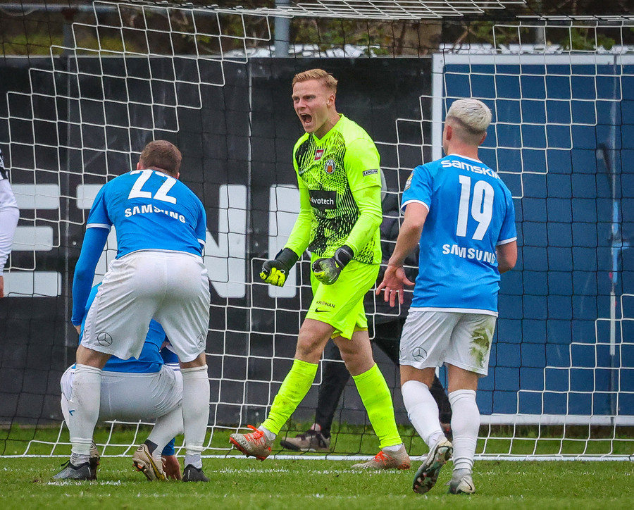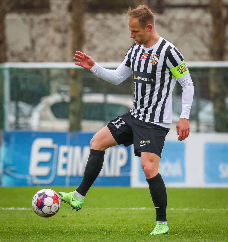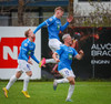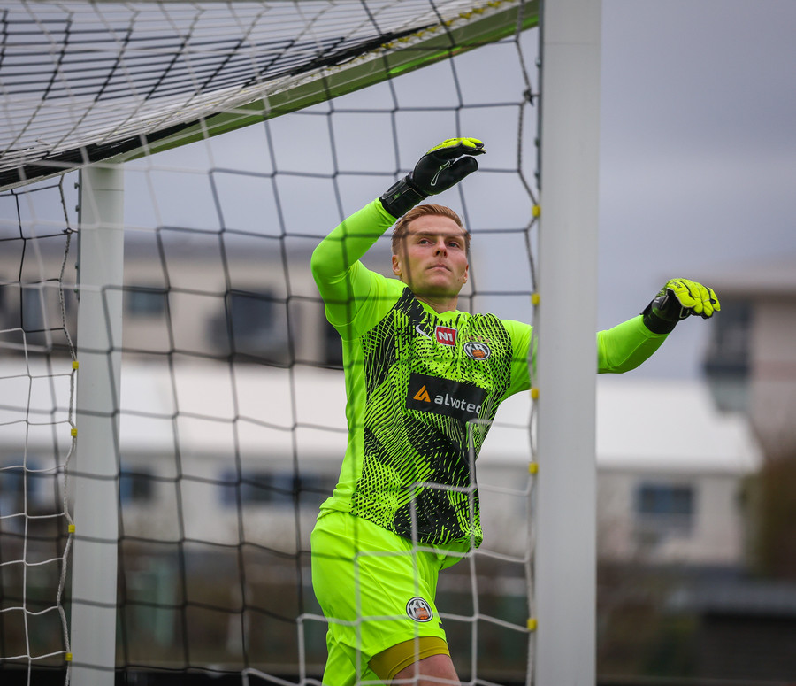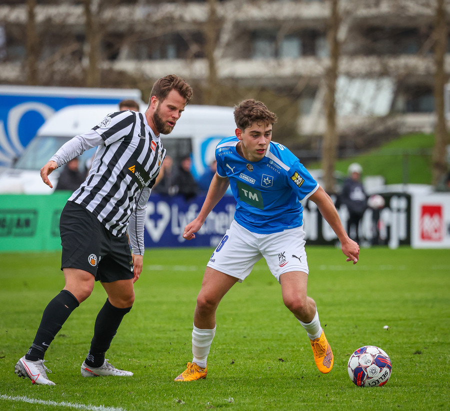 Fær boltann frá Benoný, fer framhjá Björn Berg og lætur vaða utarlega úr teignum. Skotið með vinstri fæti í fjærhornið.