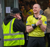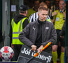 Svo er dæmd aukaspyrna fyrir framan stuðningsmenn Stjörnunnar og allt sauð upp úr.