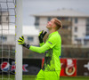 Svo kemur skot rétt framhjá marki KR. Simen leggst í kjölfarið niður og þarf aðeins að hrista þetta af sér.