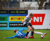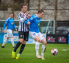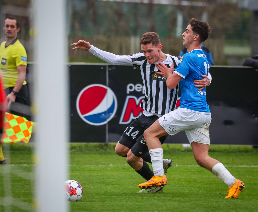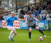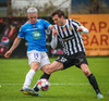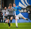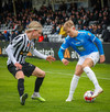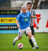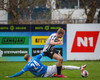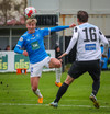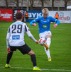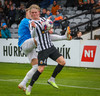 Róbert Frosti með það sem stefndi í geggjaðan snúning en Kennie nær að komast í boltann og hreinsa.