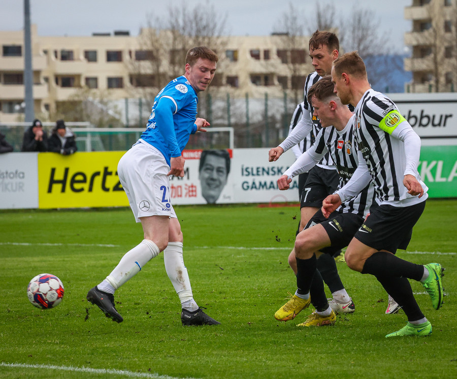 Áður átti Kristján Flóki skalla í slá eftir fyrirgjöf Kristins pic.twitter.com/1GMJ9kFCzl
