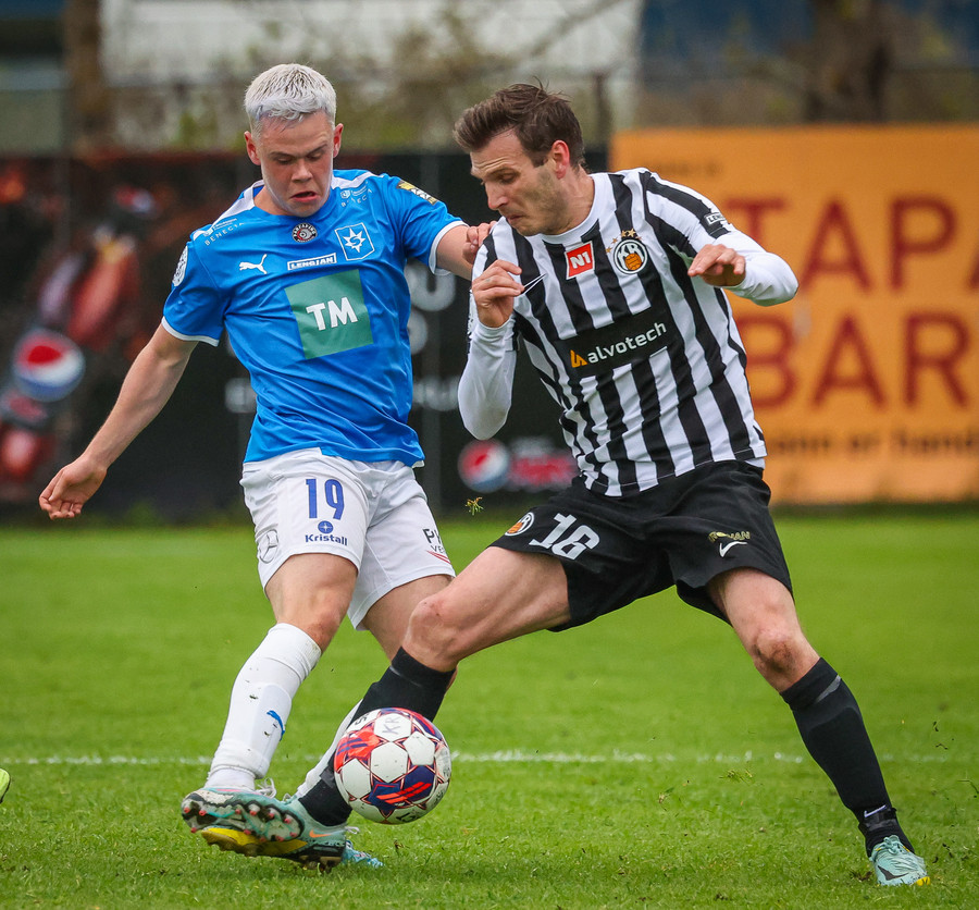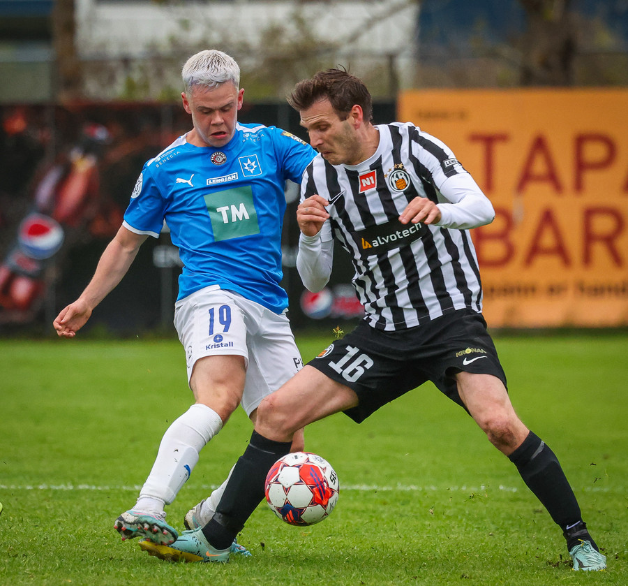 Hér má sjá brotið sem leiddi til vítaspyrnunnar, en Simon Kjellevold braut á Emil Atlasyni pic.twitter.com/a1J0SeIOj1