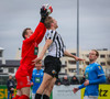 Kiddi finnur Flóka á fjær, boltinn í slána og Jóhannes Kristinn reynir að skalla í fjærhornið þegar hann nær frákastinu. Fín hugmynd en Árni Snær ekki í neinum vandræðum í því tilviki.
