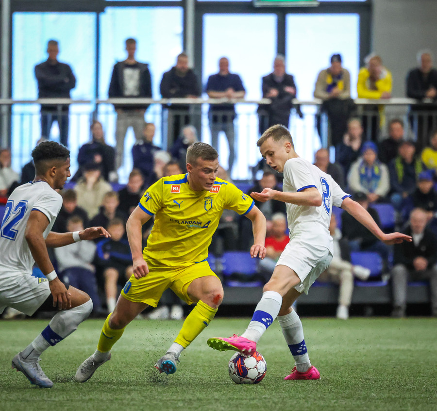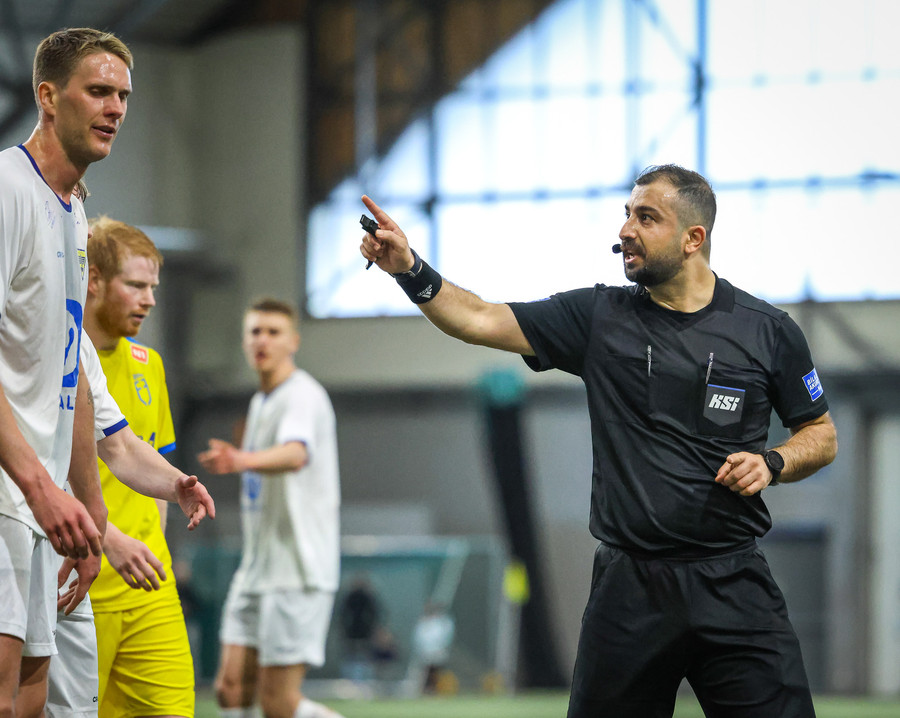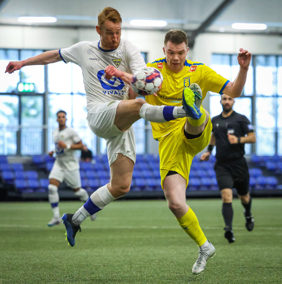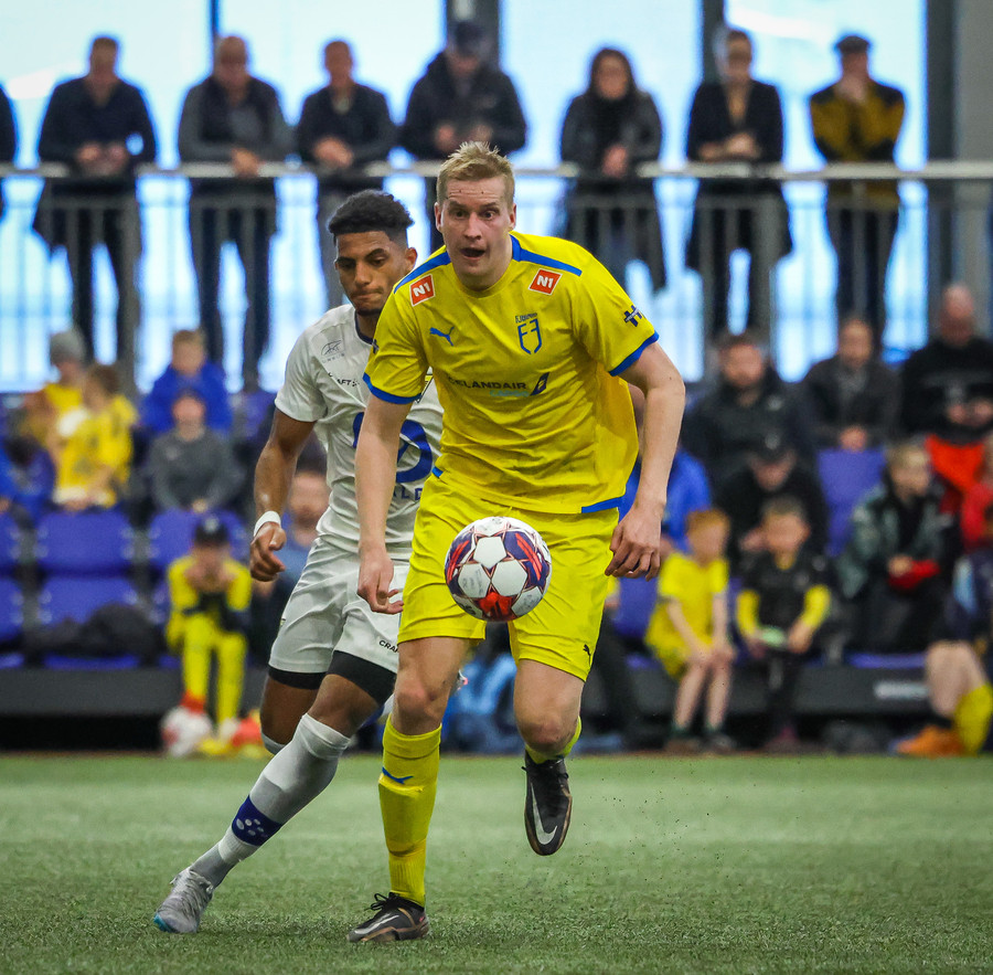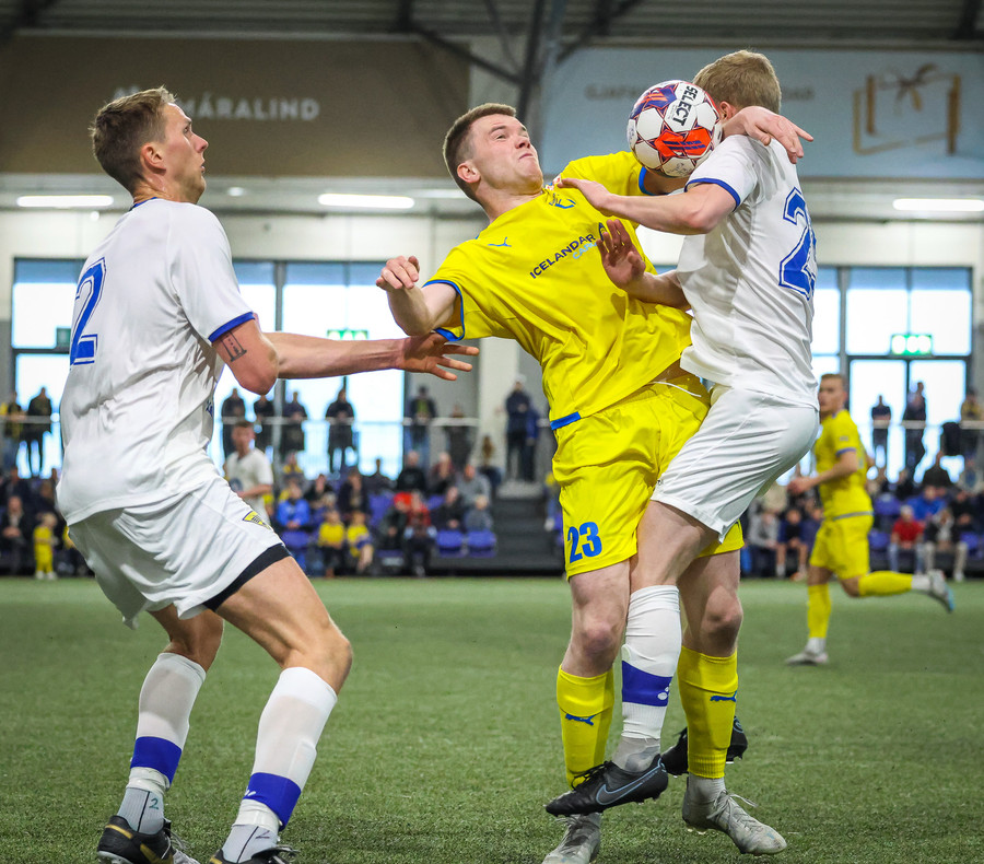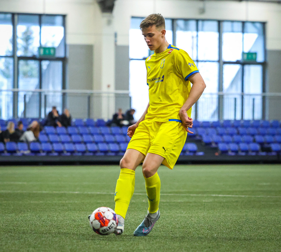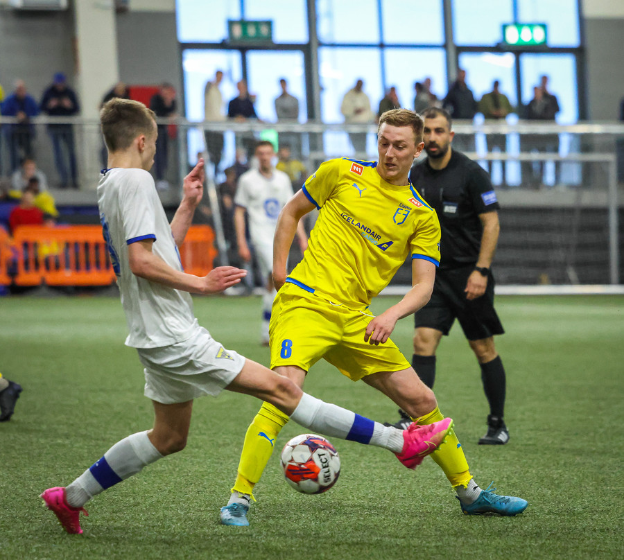 Gamla brýnið Einar Örn Daníelsson sem dæmdi í fjölda ára hér á landi er eftirlitsmaður KSÍ og tekur út dómgæsluna og umgjörð leiksins.