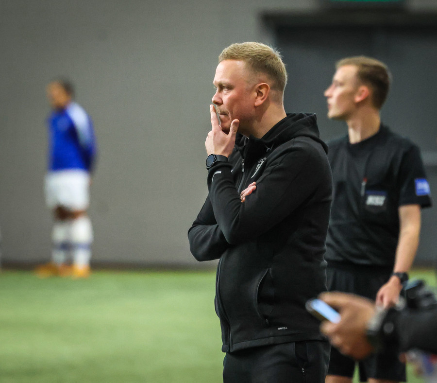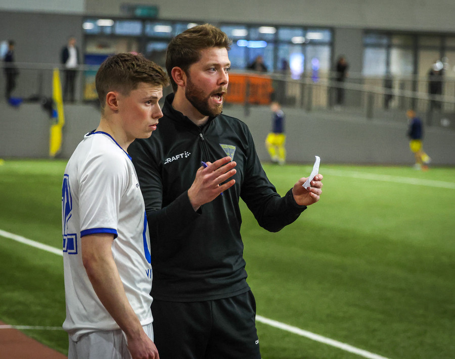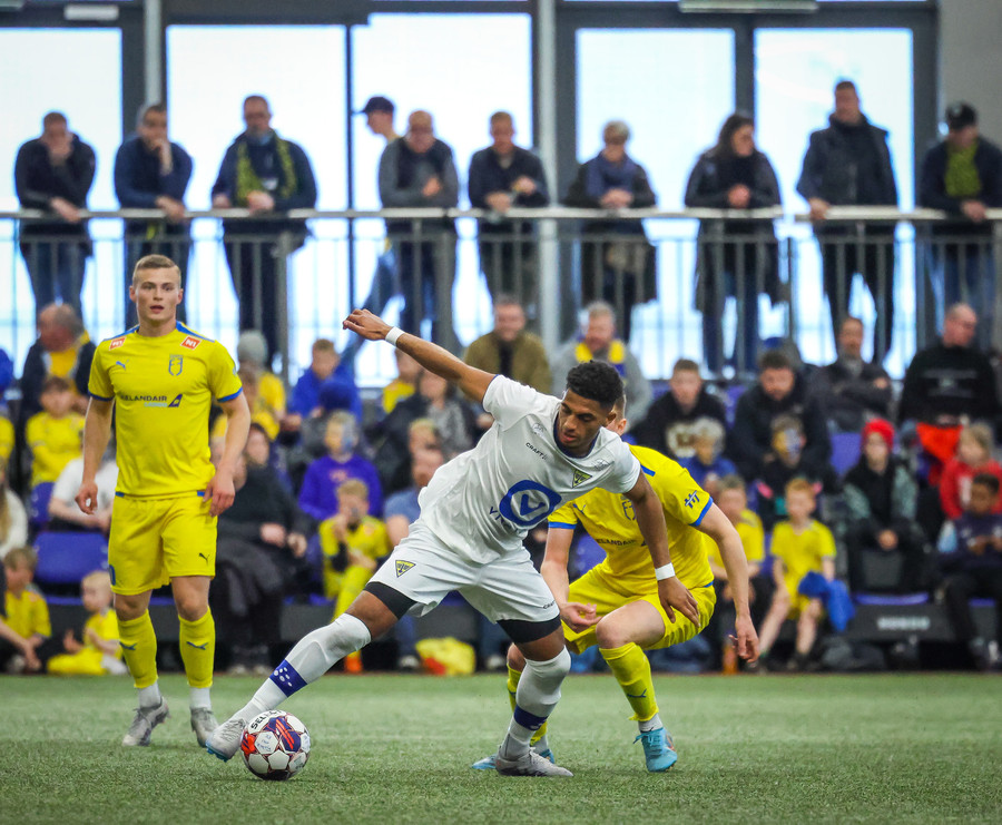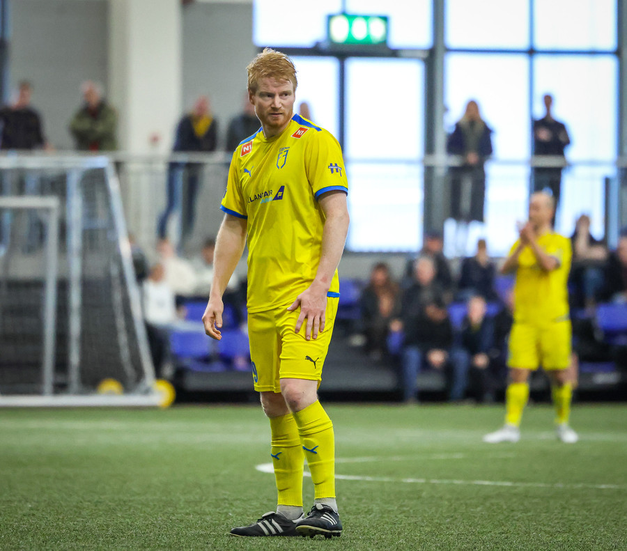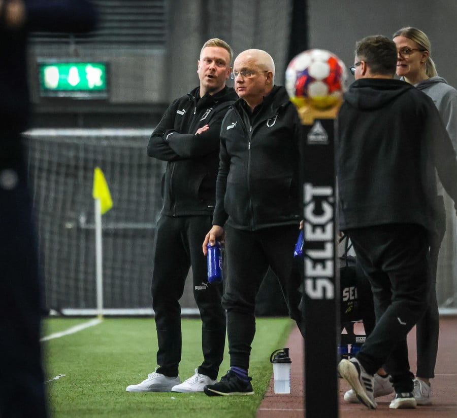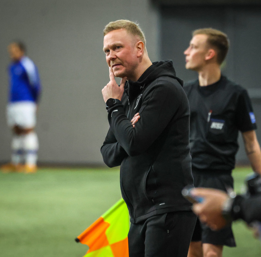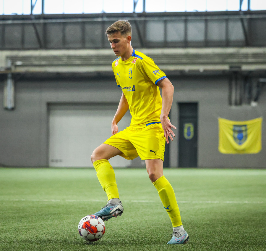 Gamla brýnið Einar Örn Daníelsson sem dæmdi í fjölda ára hér á landi er eftirlitsmaður KSÍ og tekur út dómgæsluna og umgjörð leiksins.