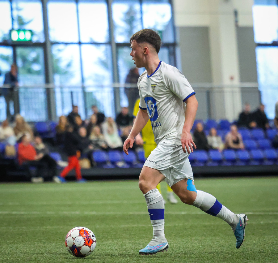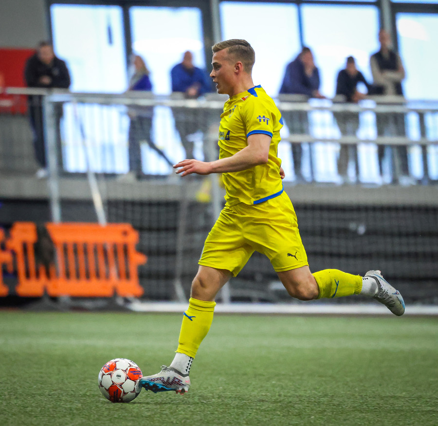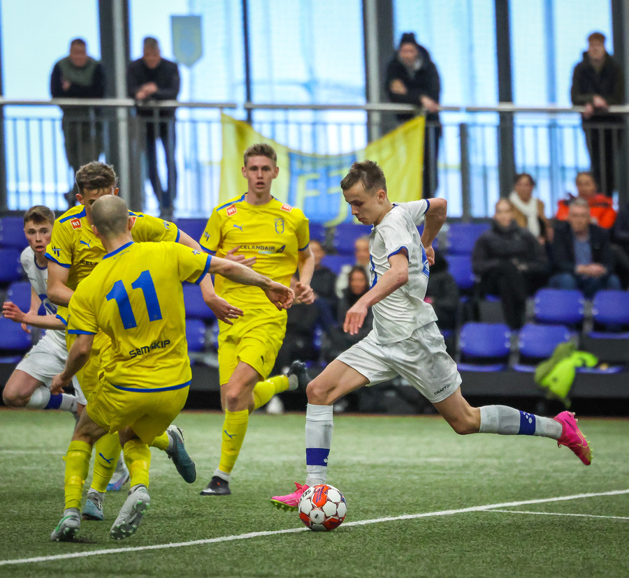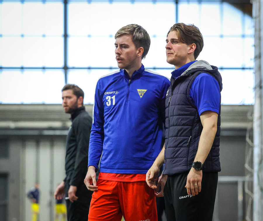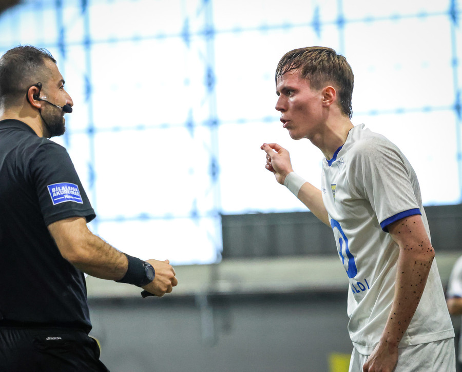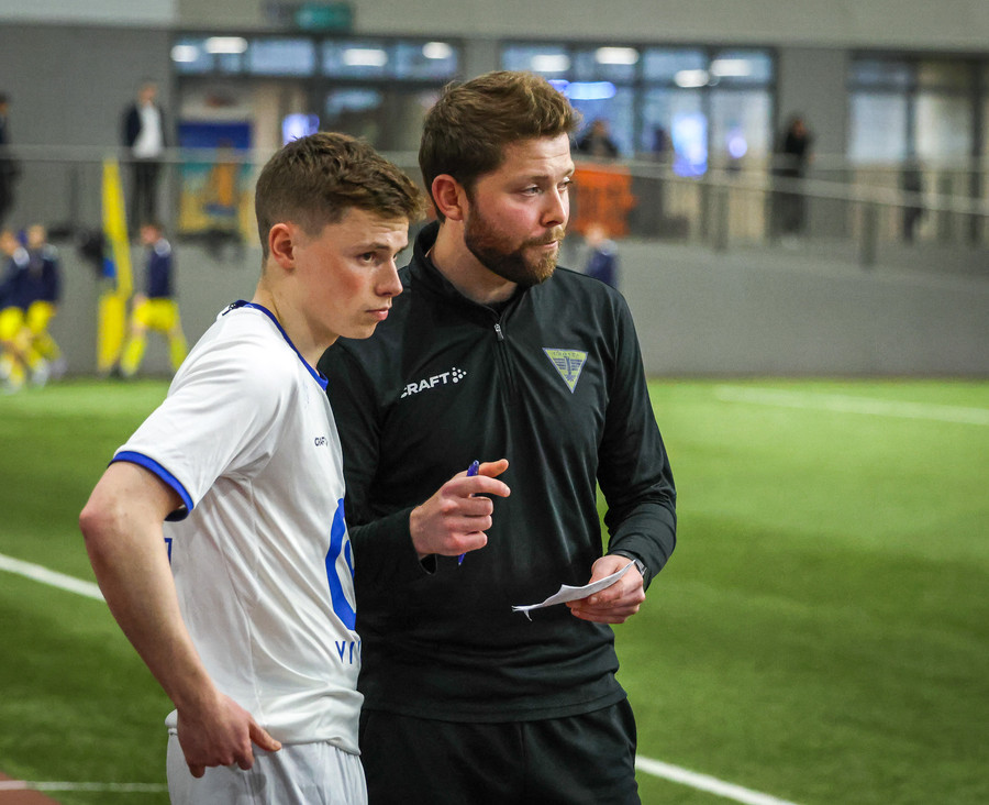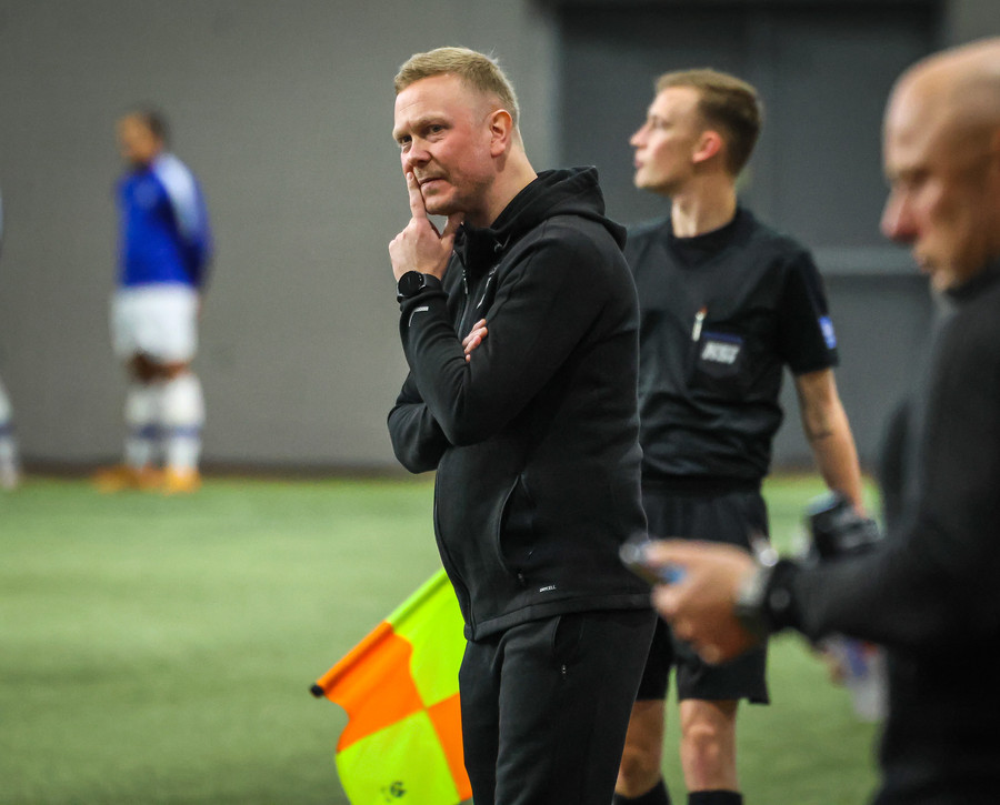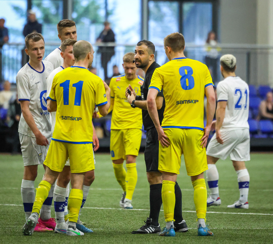 Gamla brýnið Einar Örn Daníelsson sem dæmdi í fjölda ára hér á landi er eftirlitsmaður KSÍ og tekur út dómgæsluna og umgjörð leiksins.
