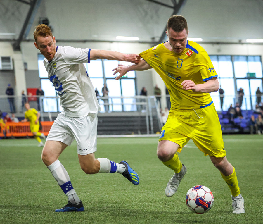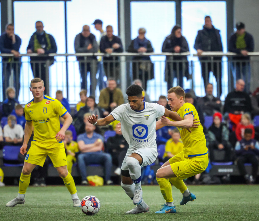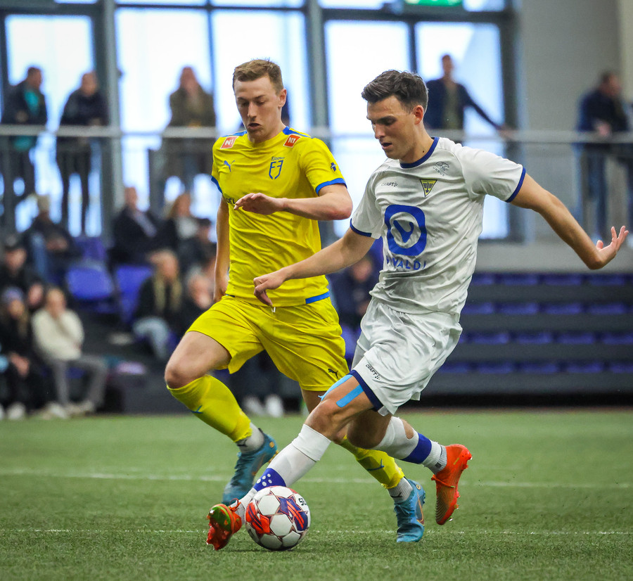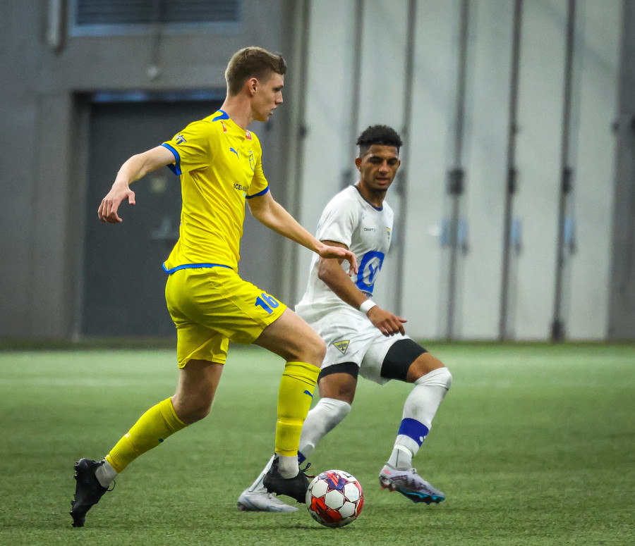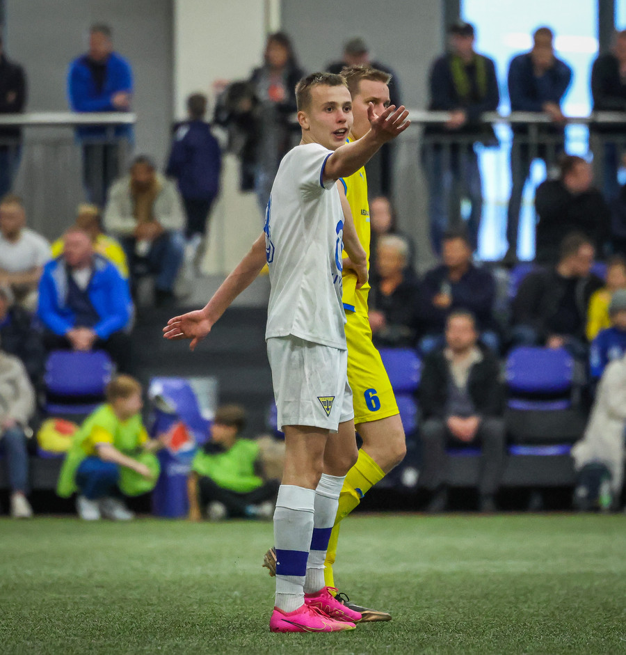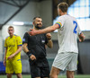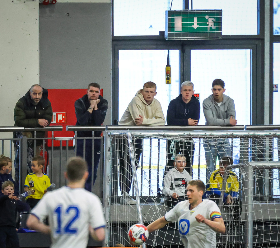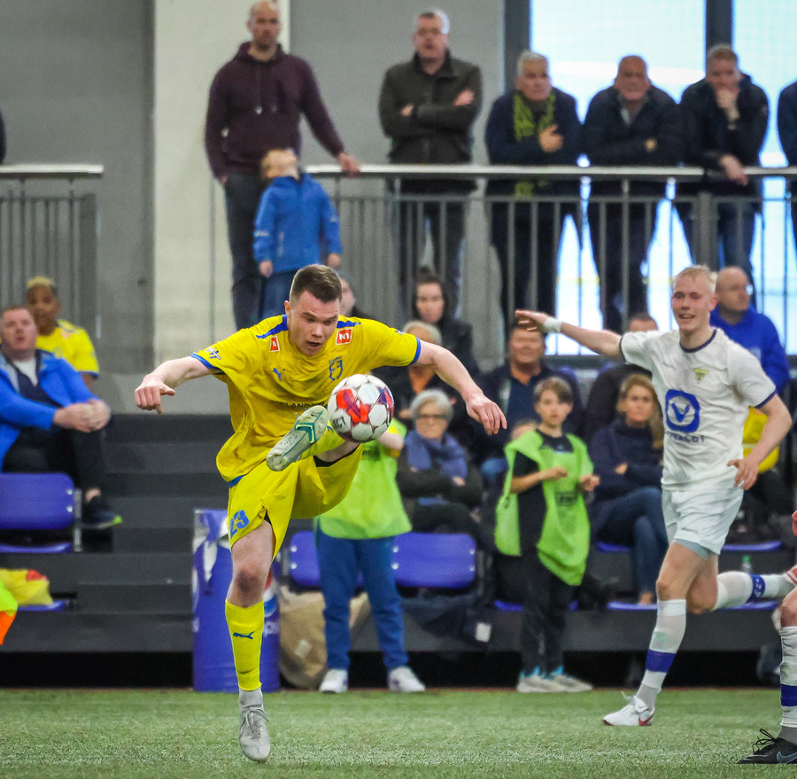 Gamla brýnið Einar Örn Daníelsson sem dæmdi í fjölda ára hér á landi er eftirlitsmaður KSÍ og tekur út dómgæsluna og umgjörð leiksins.