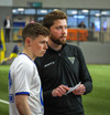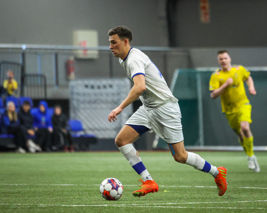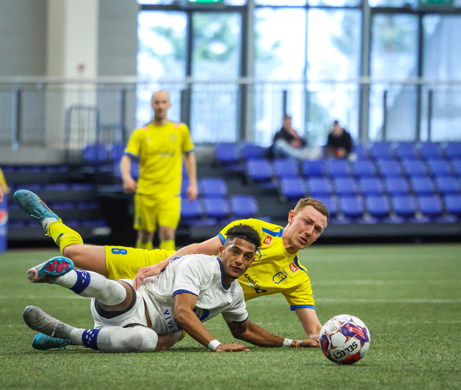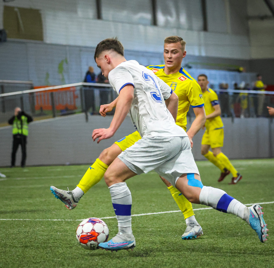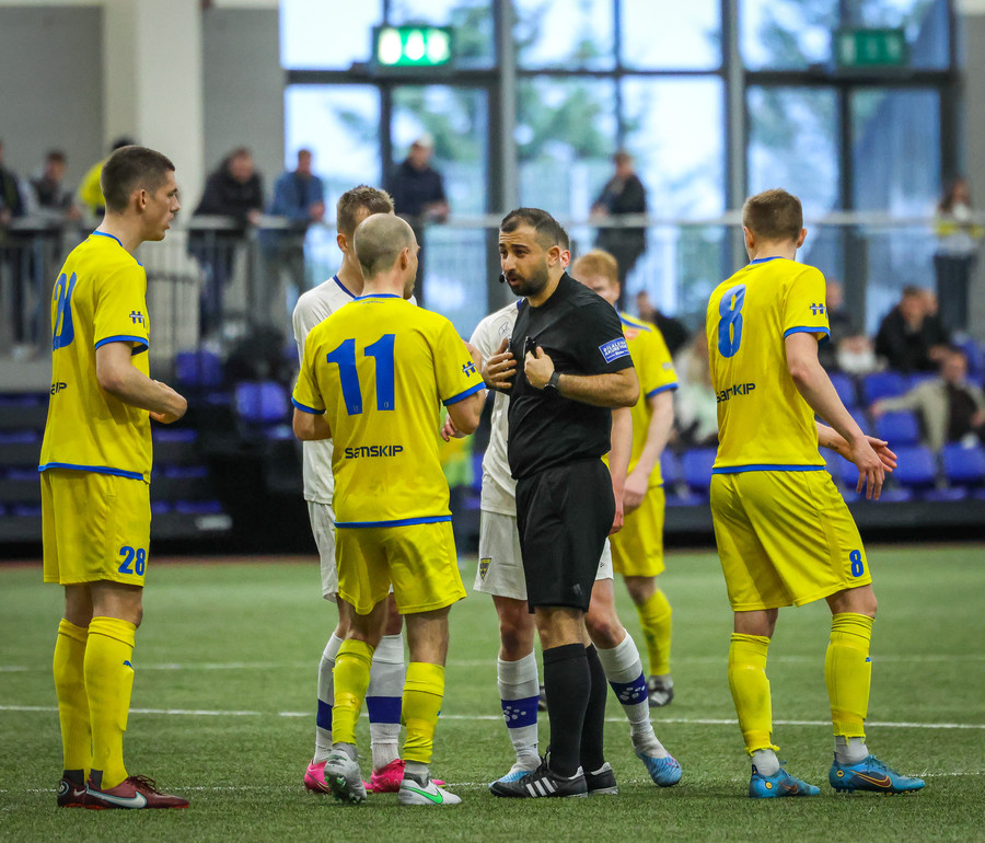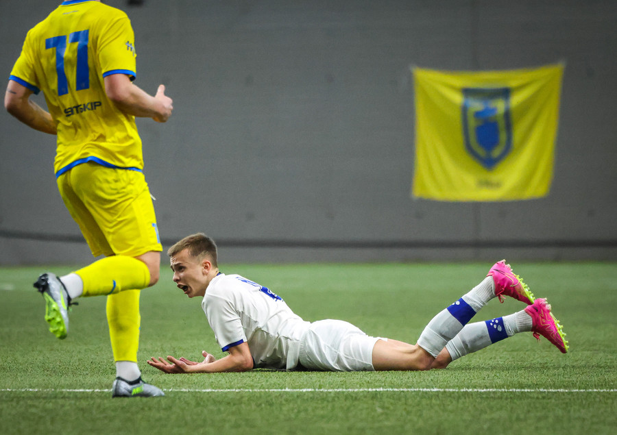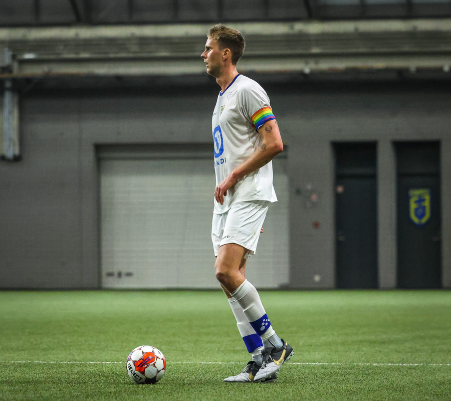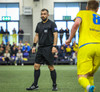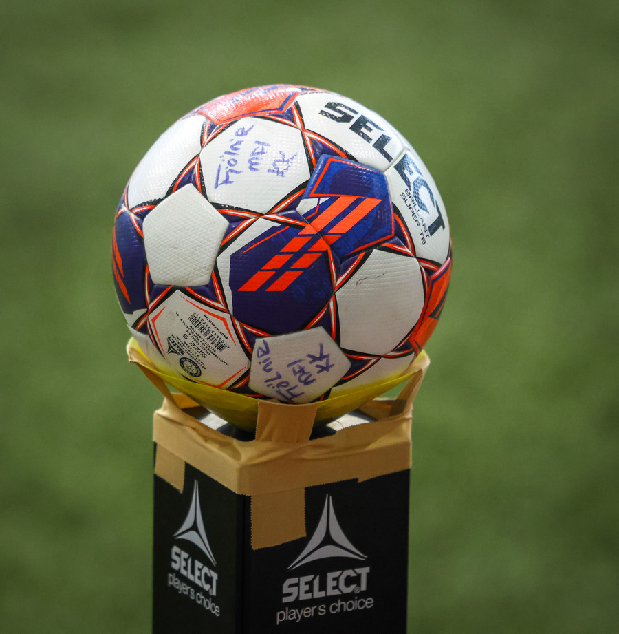 Gamla brýnið Einar Örn Daníelsson sem dæmdi í fjölda ára hér á landi er eftirlitsmaður KSÍ og tekur út dómgæsluna og umgjörð leiksins.
