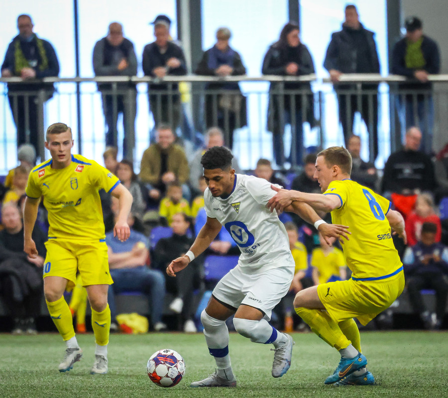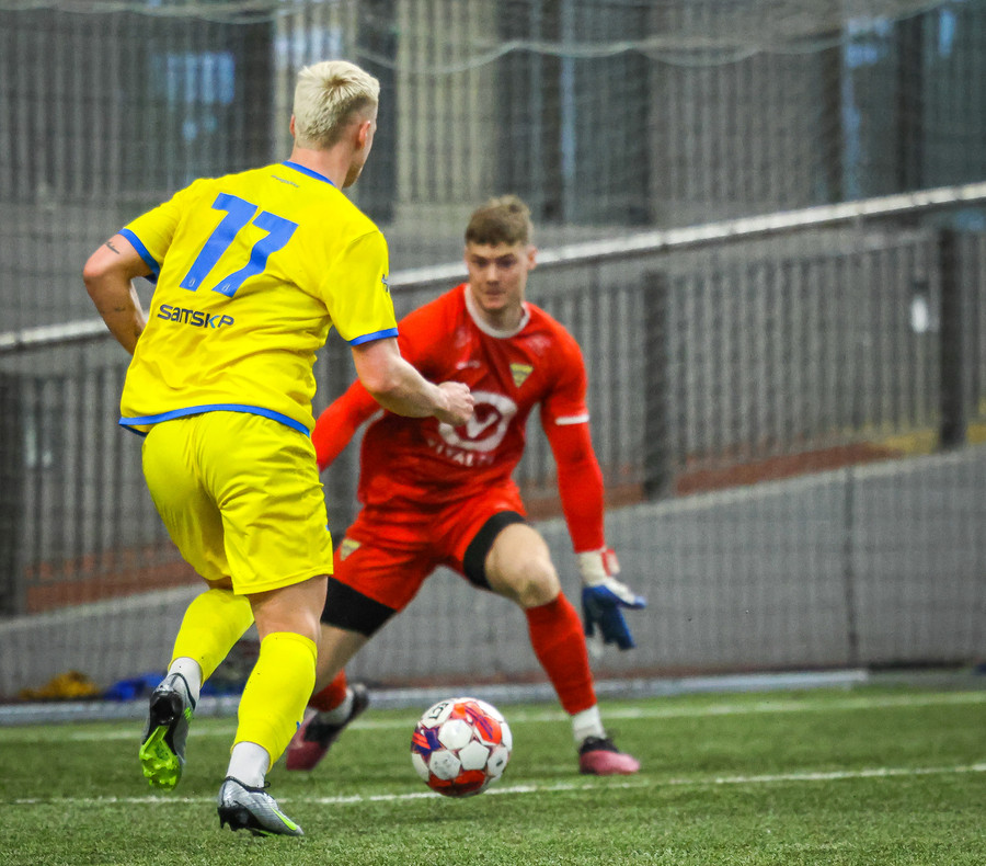 Allt í einu var Axel sloppinn einn í gegn eftir stungusendingu og er nálægt því að jafna en skotið naumlega framhjá