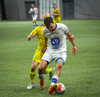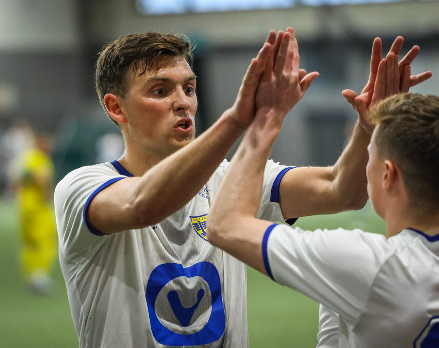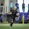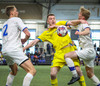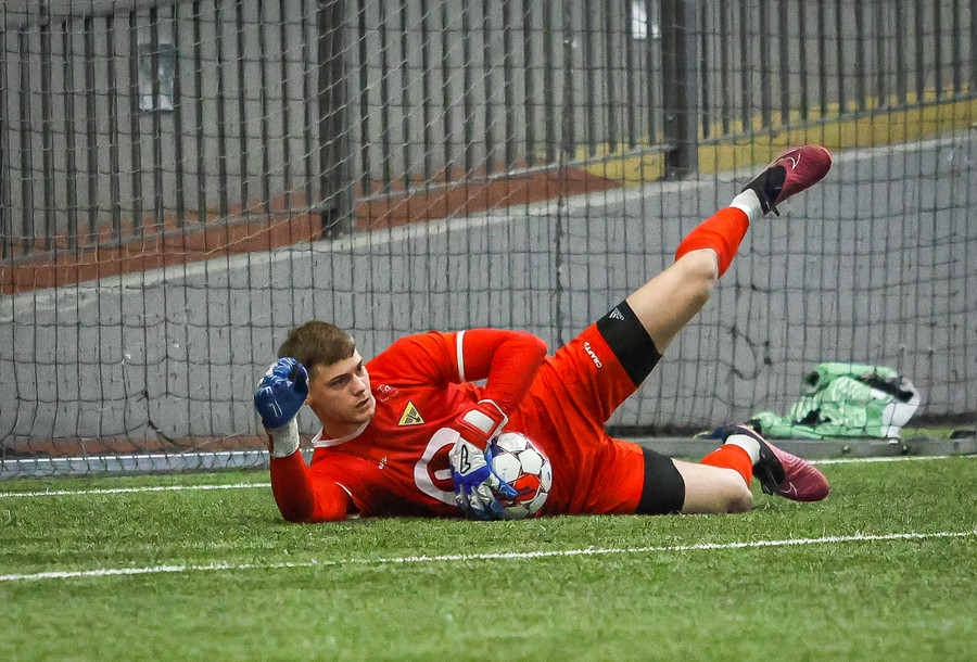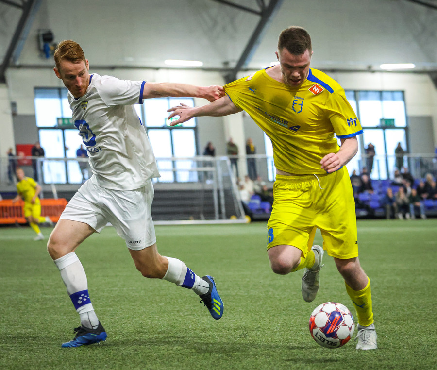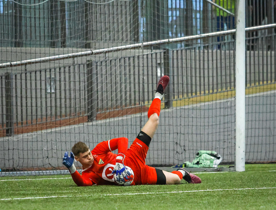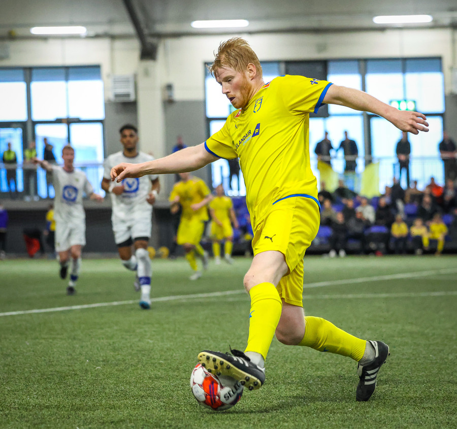 Guðmundur Karl (Fjölni) með skot rétt fyrir utan teig sem Rafal ver án mikillar fyrirhafnar.