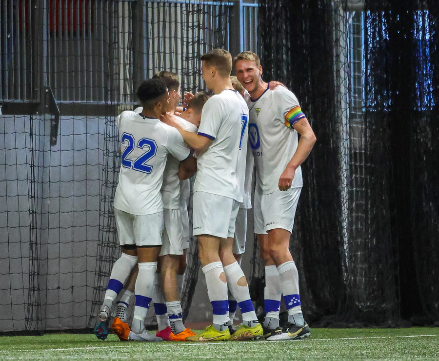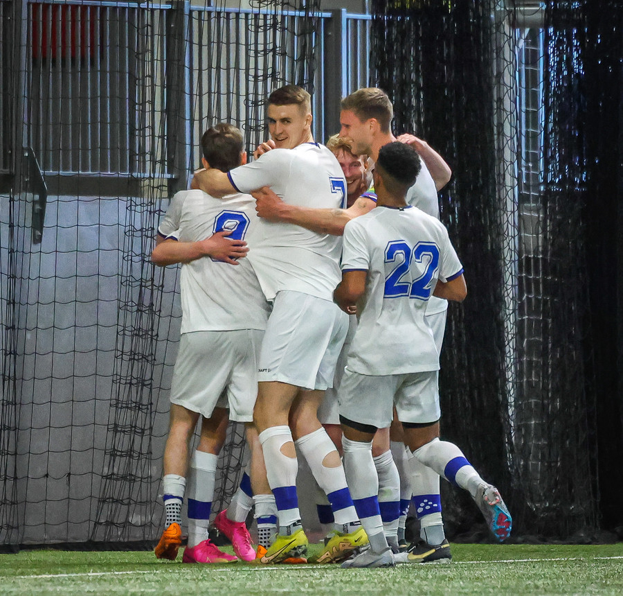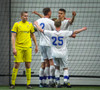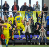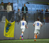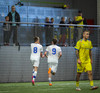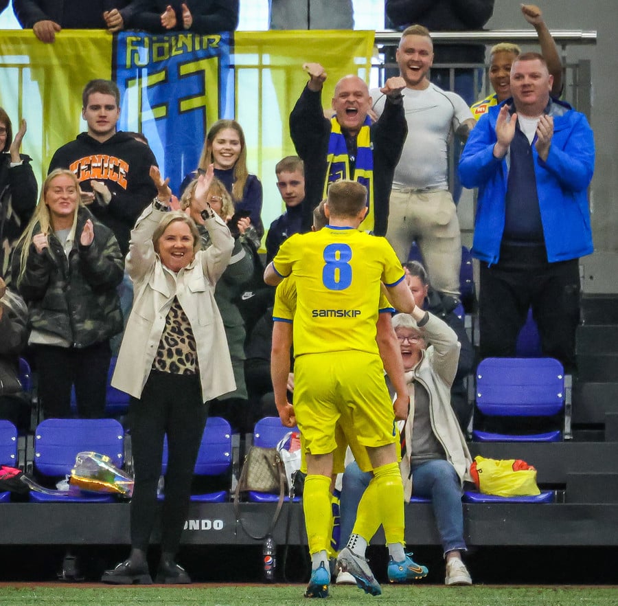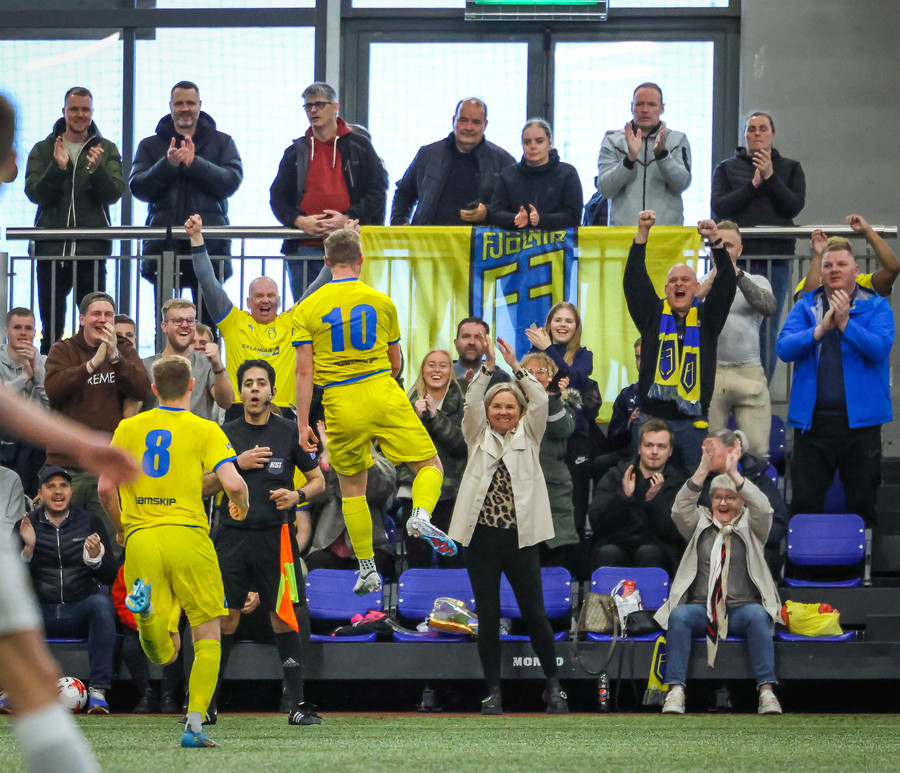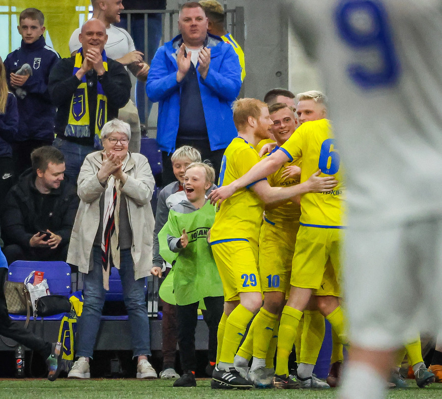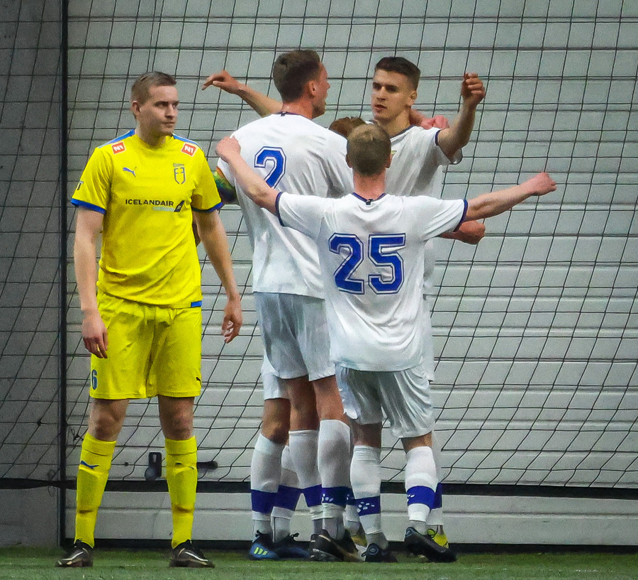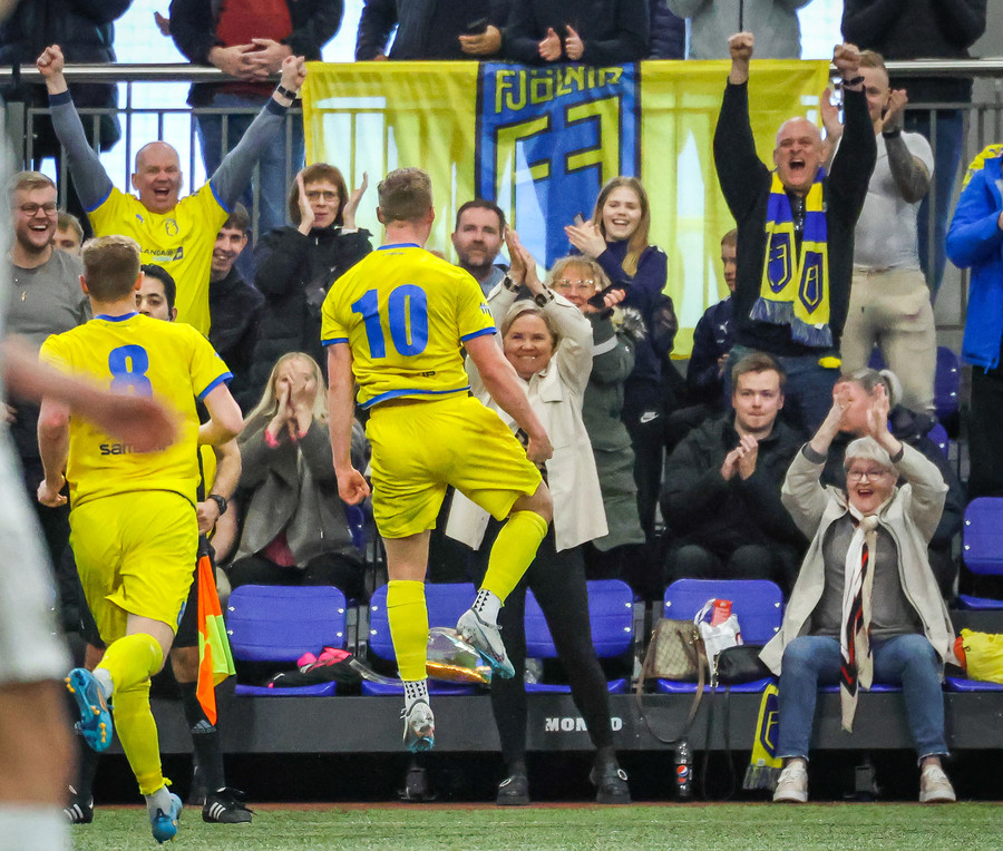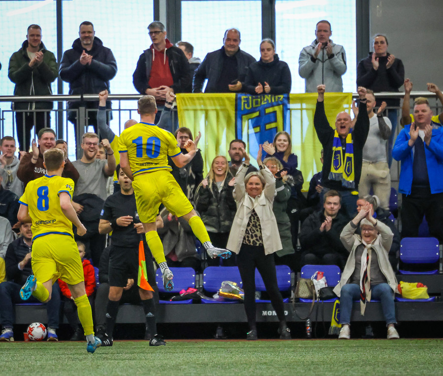 Hafliði Breiðfjörð er mættur með myndavélina á völlinn og náði þessari mynd af fögnuði Gróttuliðsins eftir markið.