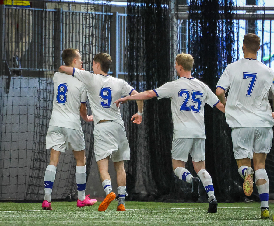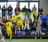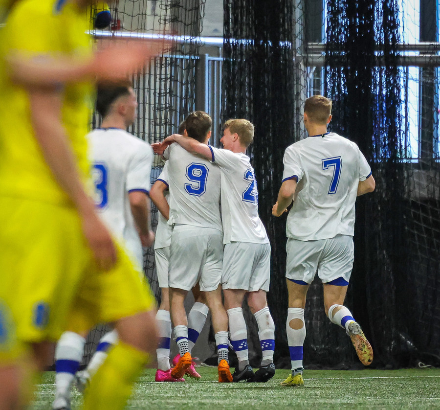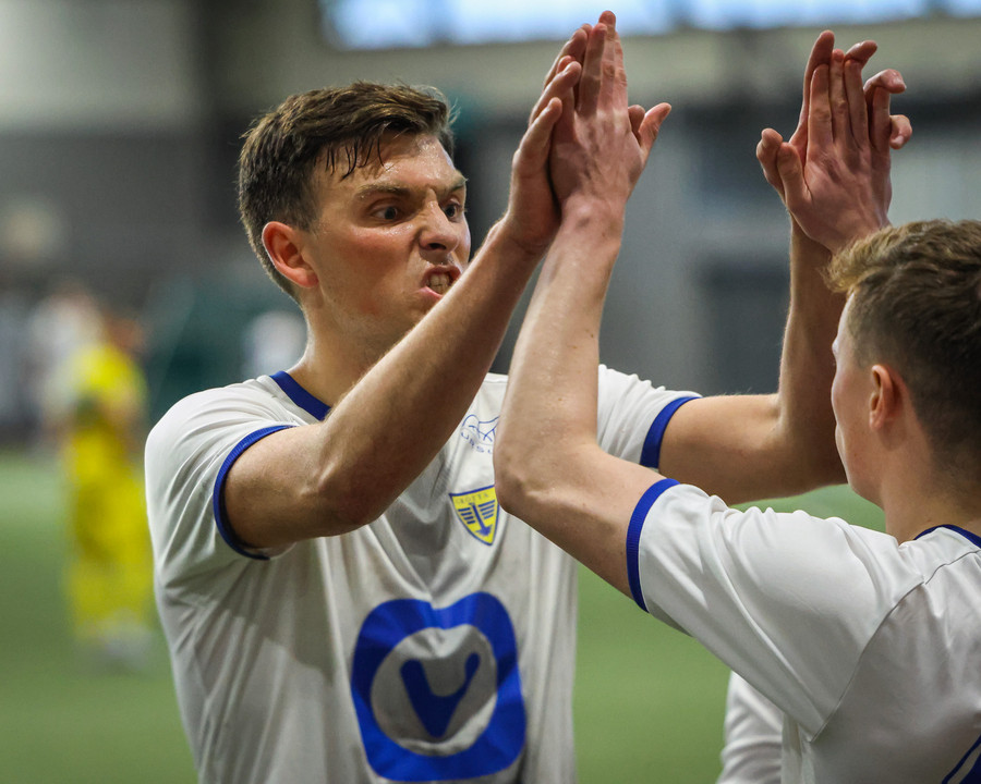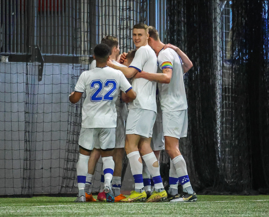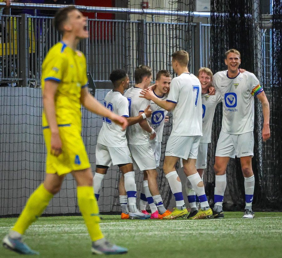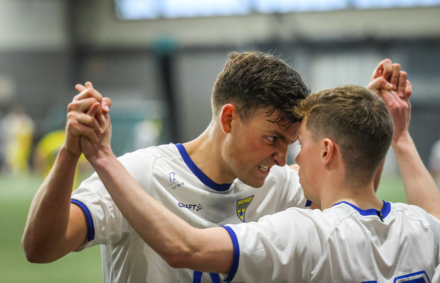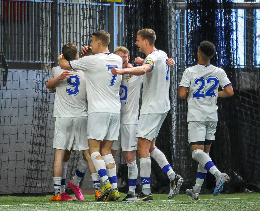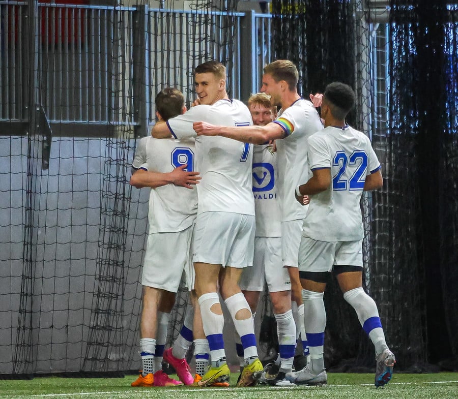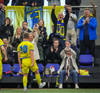 Hafliði Breiðfjörð er mættur með myndavélina á völlinn og náði þessari mynd af fögnuði Gróttuliðsins eftir markið.
