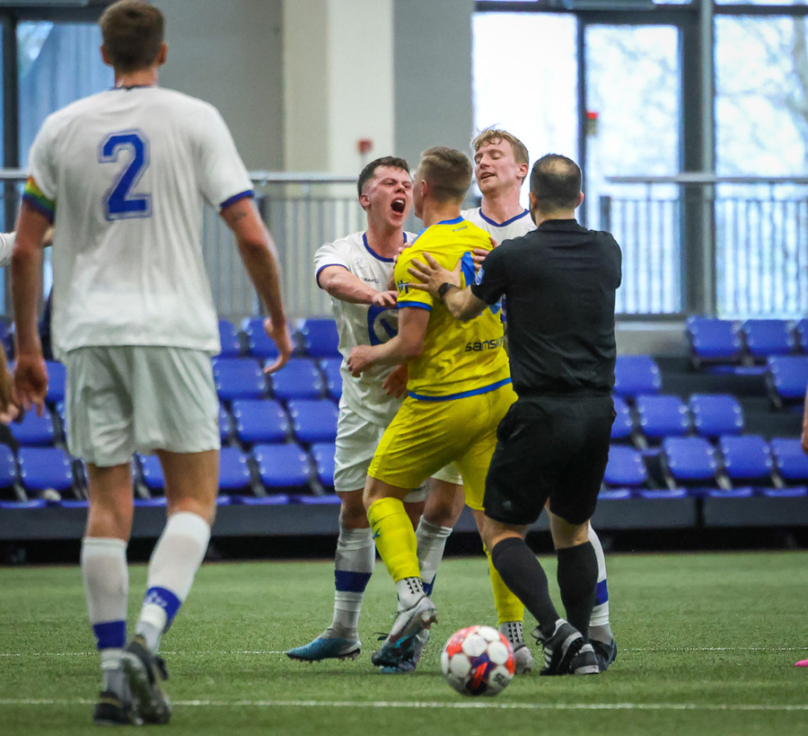 Smá læti núna. Axel Freyr brýtur af sér og í kjölfarið verða smá stympingar sem enda með því að bæði Axel (Fjölni) og Arnar Númi (Gróttu) fá spjald.